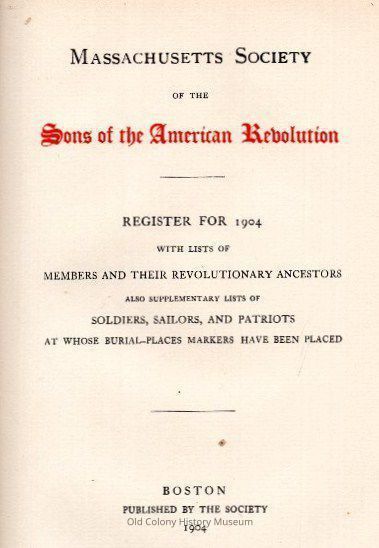 Massachusetts Society of the Sons of the American Revolution: Register for 1904 with Lists of Members and Their Revolutionary Ancestors�Entry/Object ID