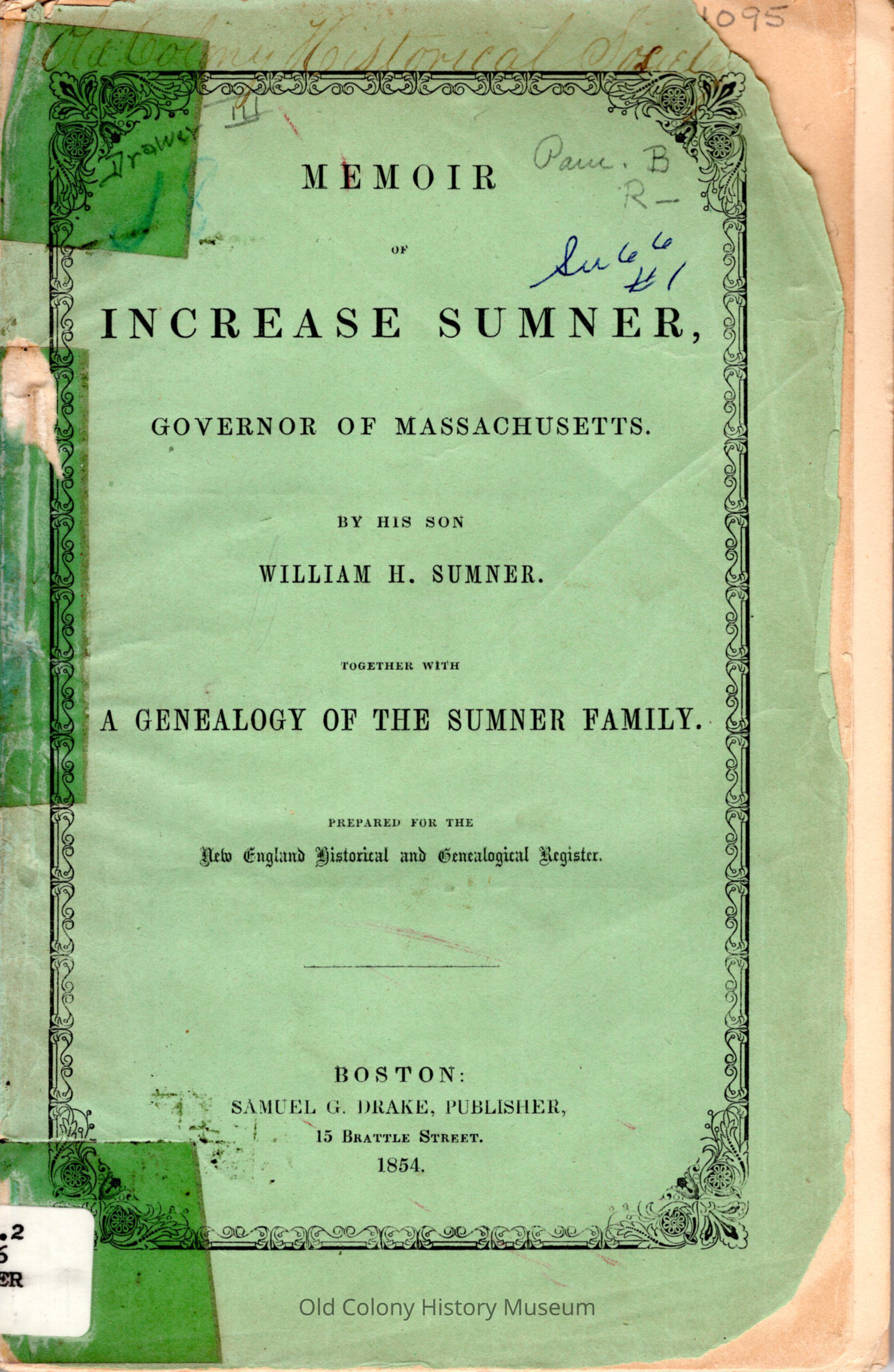 Memoir of Increase Sumner, Governor of MassachusettsEntry/Object ID