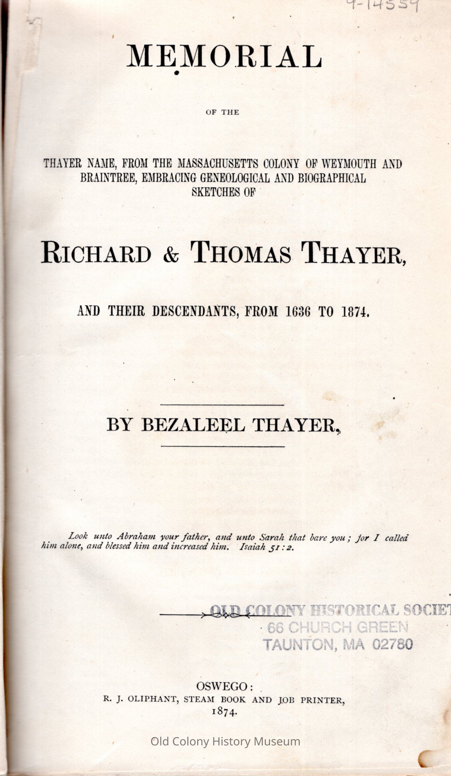 1. Thayer Family (Richard Thayer, d. 1695). 2. Thayer Family (Thomas Thayer, d. 1665).Book Details