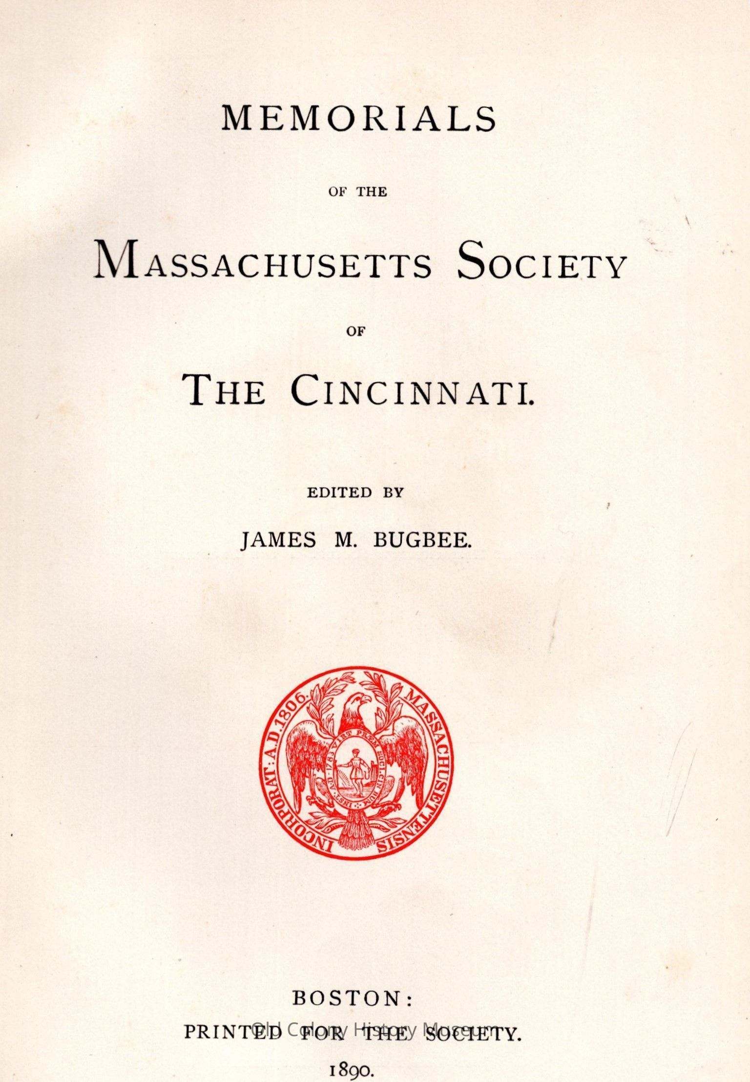 Memorials of the Massachusetts Society of the CincinnatiEntry/Object ID