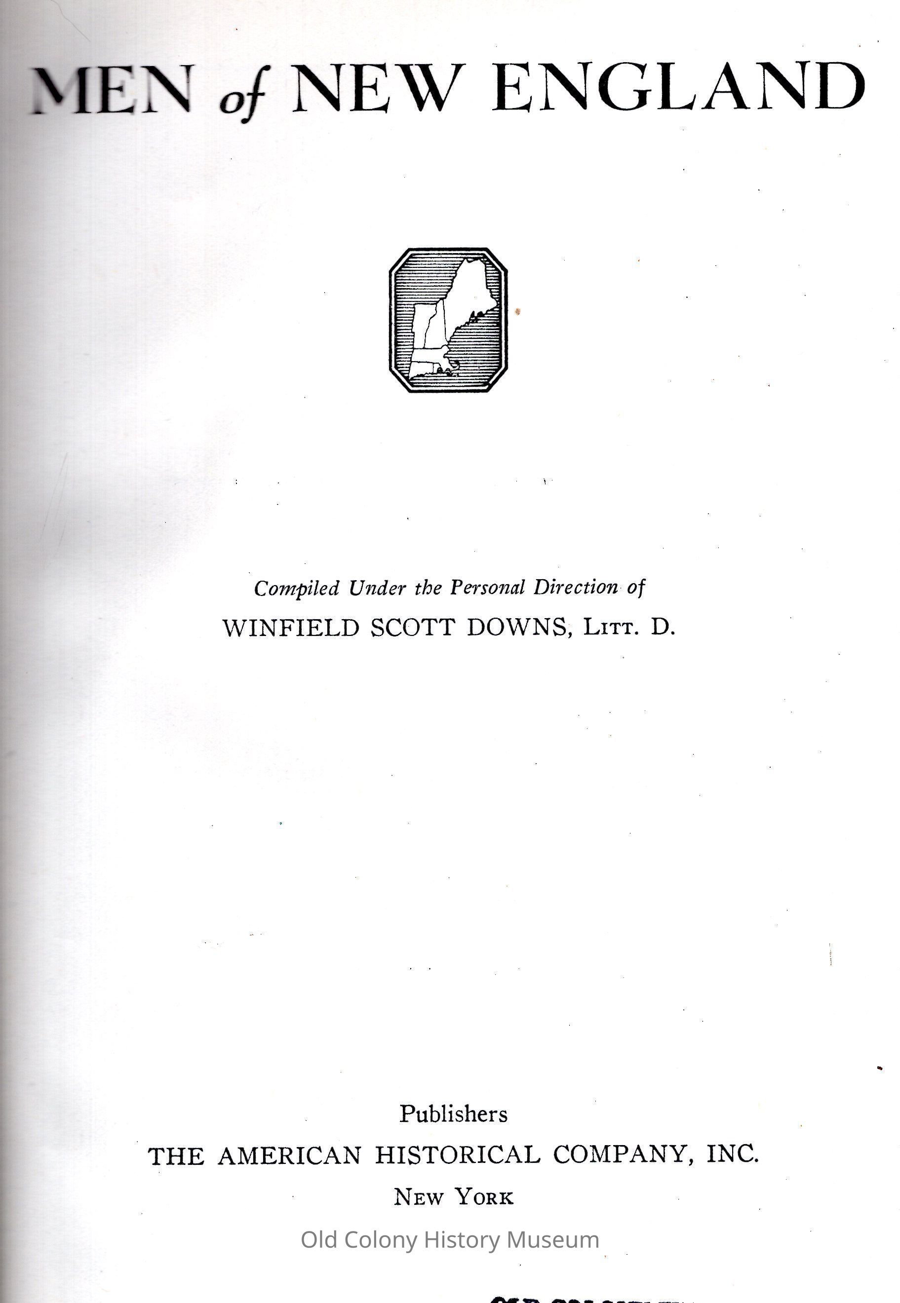 Men of New England: Compiled Under the Personal Direction of Winfield Scott DownsEntry/Object ID