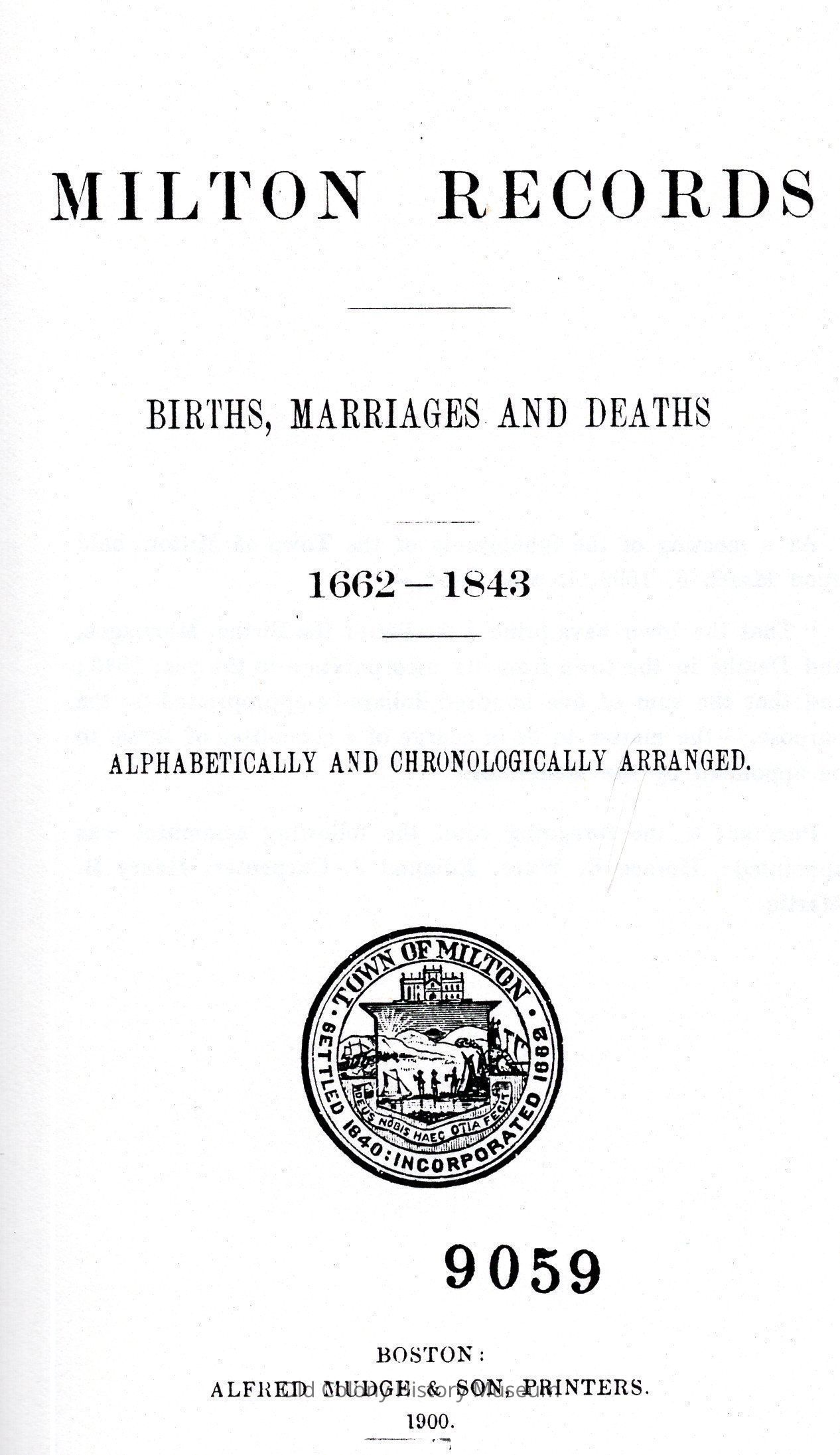 1. Registers of births, etc.--Milton, Mass.Book Details