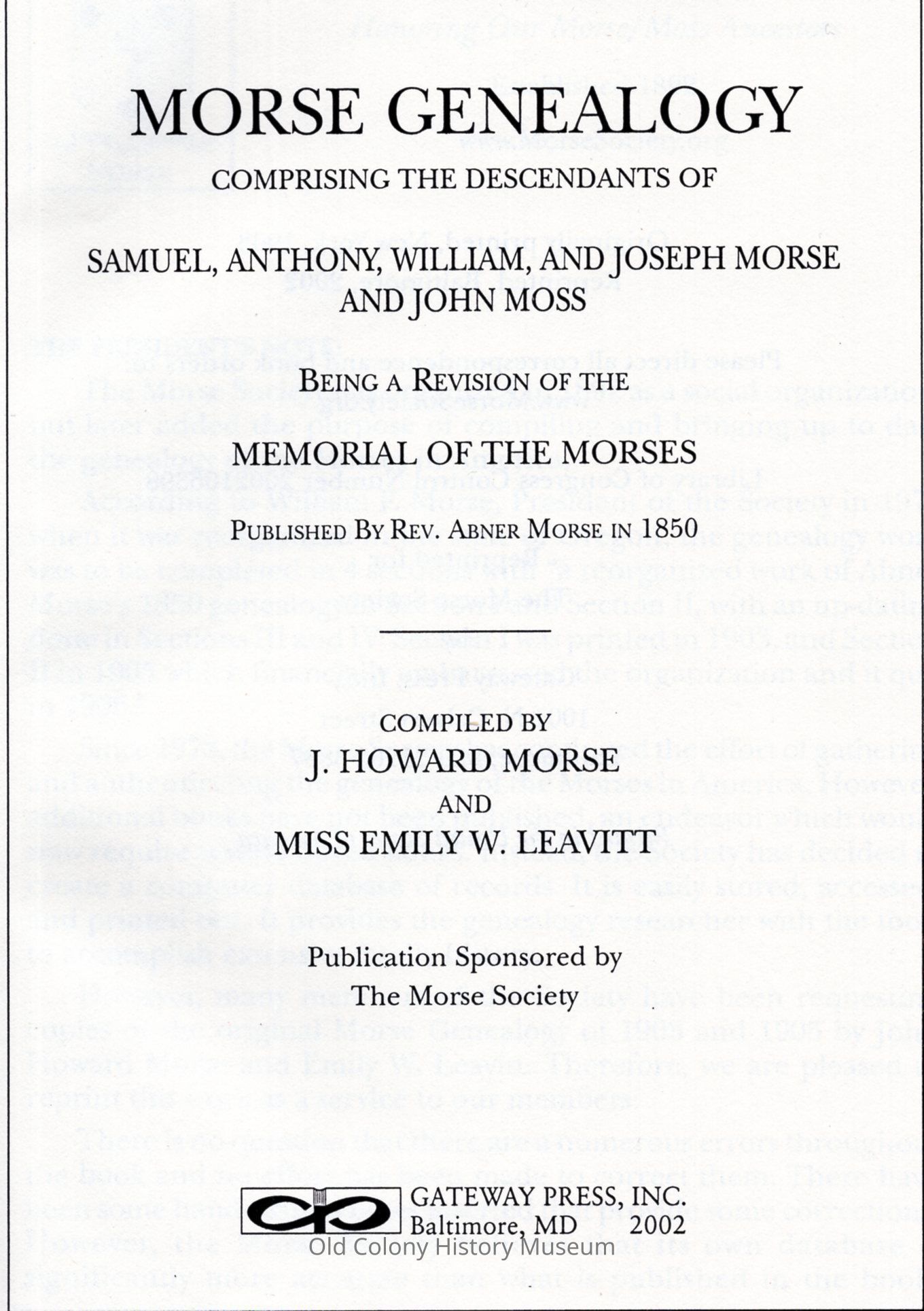 J. Howard Morse, Miss Emily W. LeavittPublisher