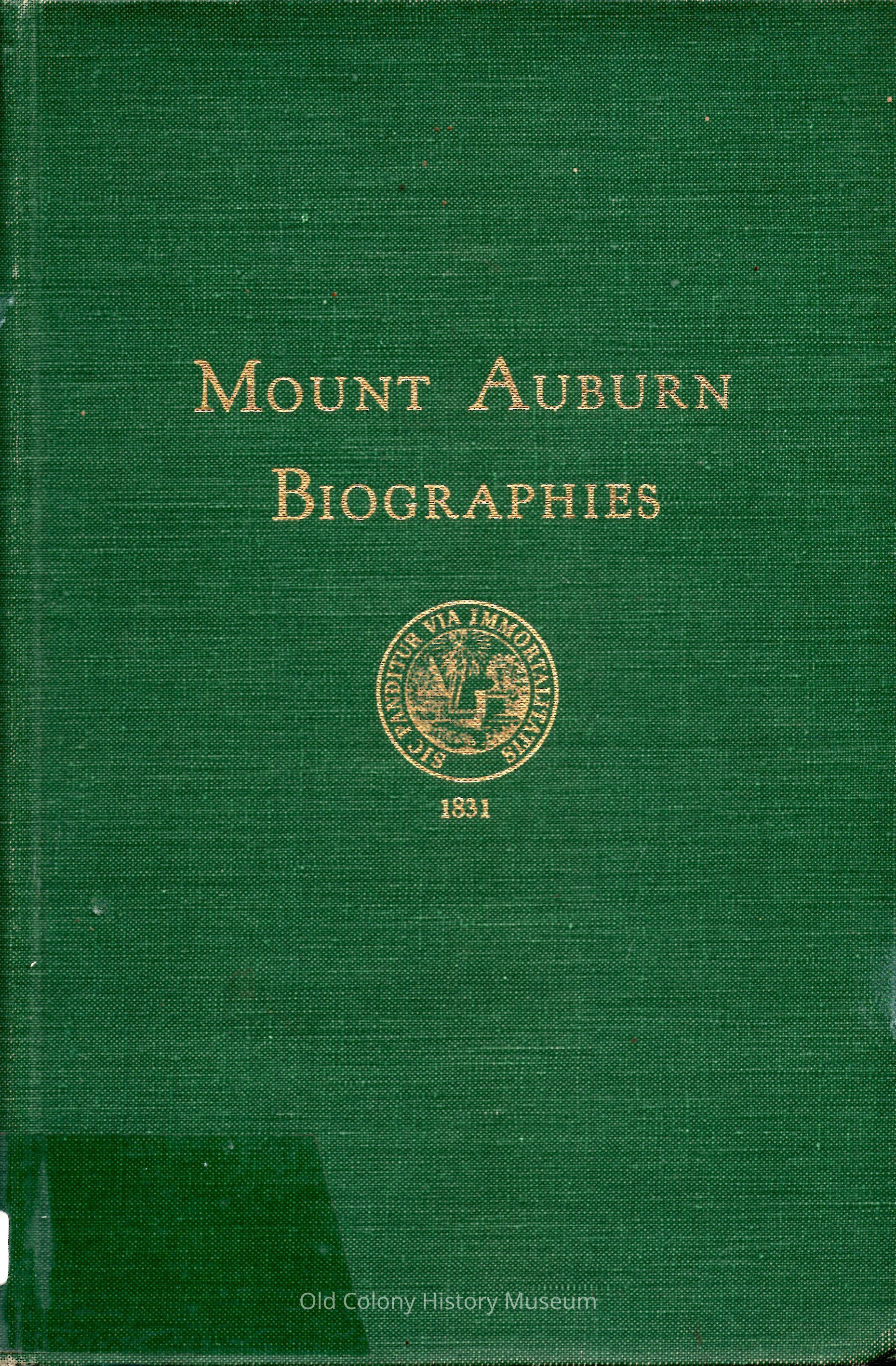 Mount Auburn Biographies; a biographical listing of distinguished persons interred in Mount Auburn Cemetery, Cambridge, Massachusetts, 1831 - 1952Entry/Object ID