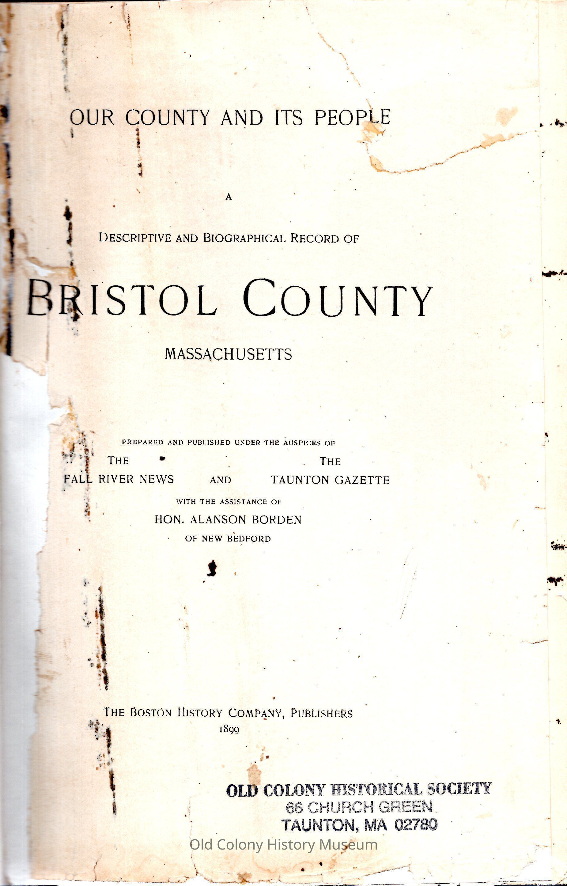 Our County and its People: a Descriptive and Biographical Record of Bristol County MassachusettsEntry/Object ID