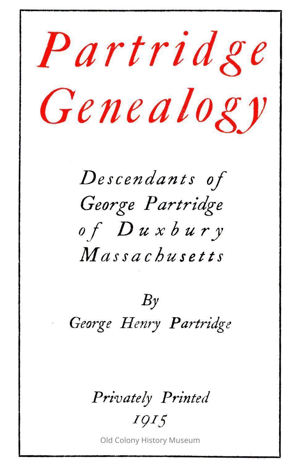 Partridge Genealogy: Descendants of George Partridge of Duxbury, MassachusettsEntry/Object ID