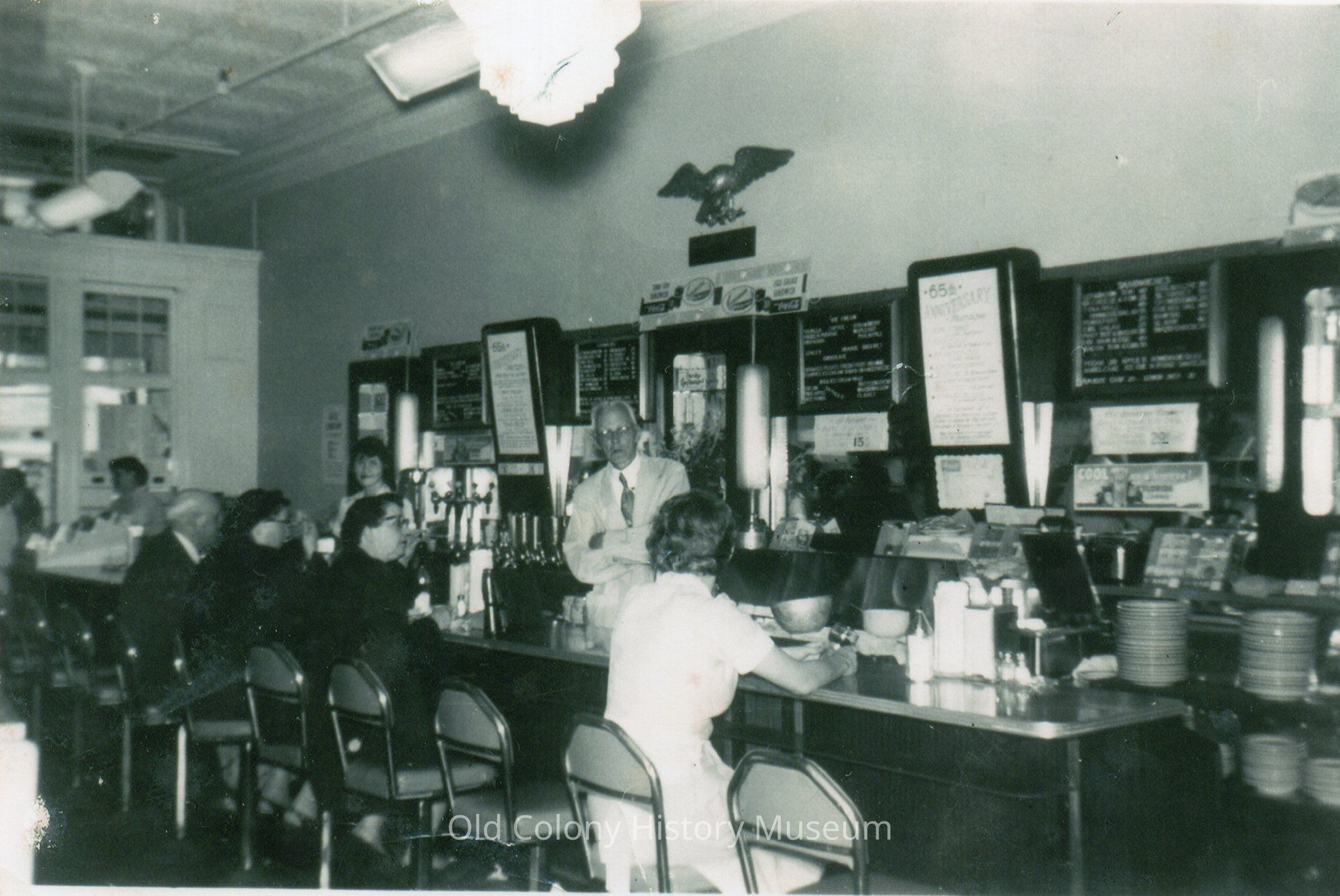 VB People - Leonard - Fremont Leonard (behind counter) - Janet Leonard (wife of Gilman) in white at counter - Leonard RestaurantContext