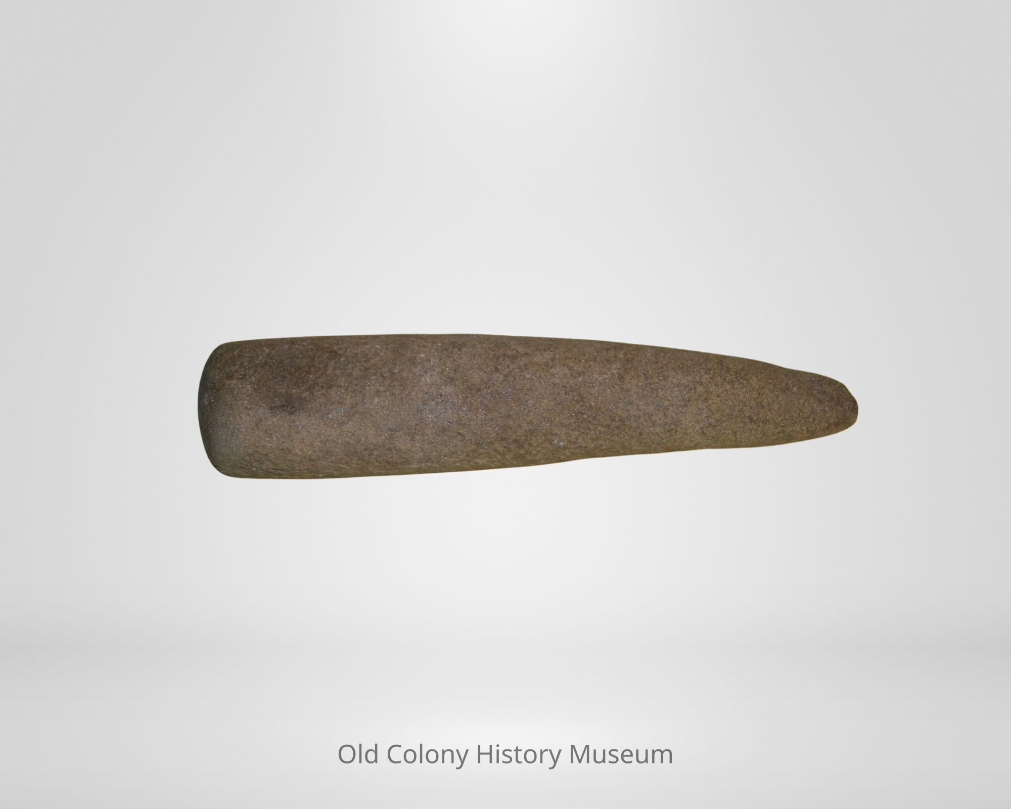 Pestle; conical shape; flat area near base; gouge at tip; base has crack-like fissure; other side has brown stain, flat over toward center from Basel tip wornMade/Created