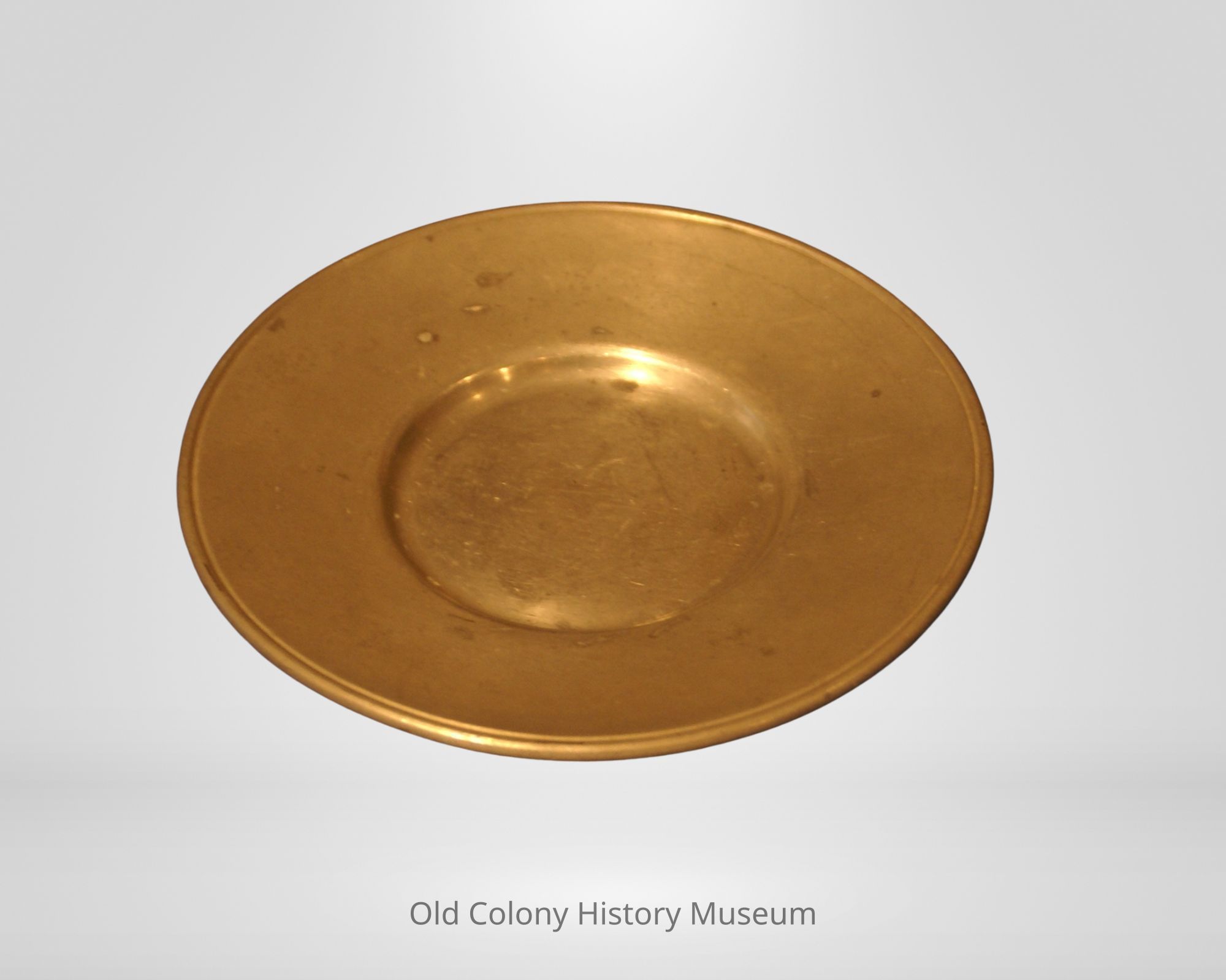 Small plate with inscribed outer lip. Bottom stamped with the three known markings of Lester Vaughan: (1) "LH" over "V" in box, (2) "L.H.Vaughan, Taunton, Mass., Pewter" and (3) "LHVaughan, Taunton" around eagle with beveled surround.Made/Created