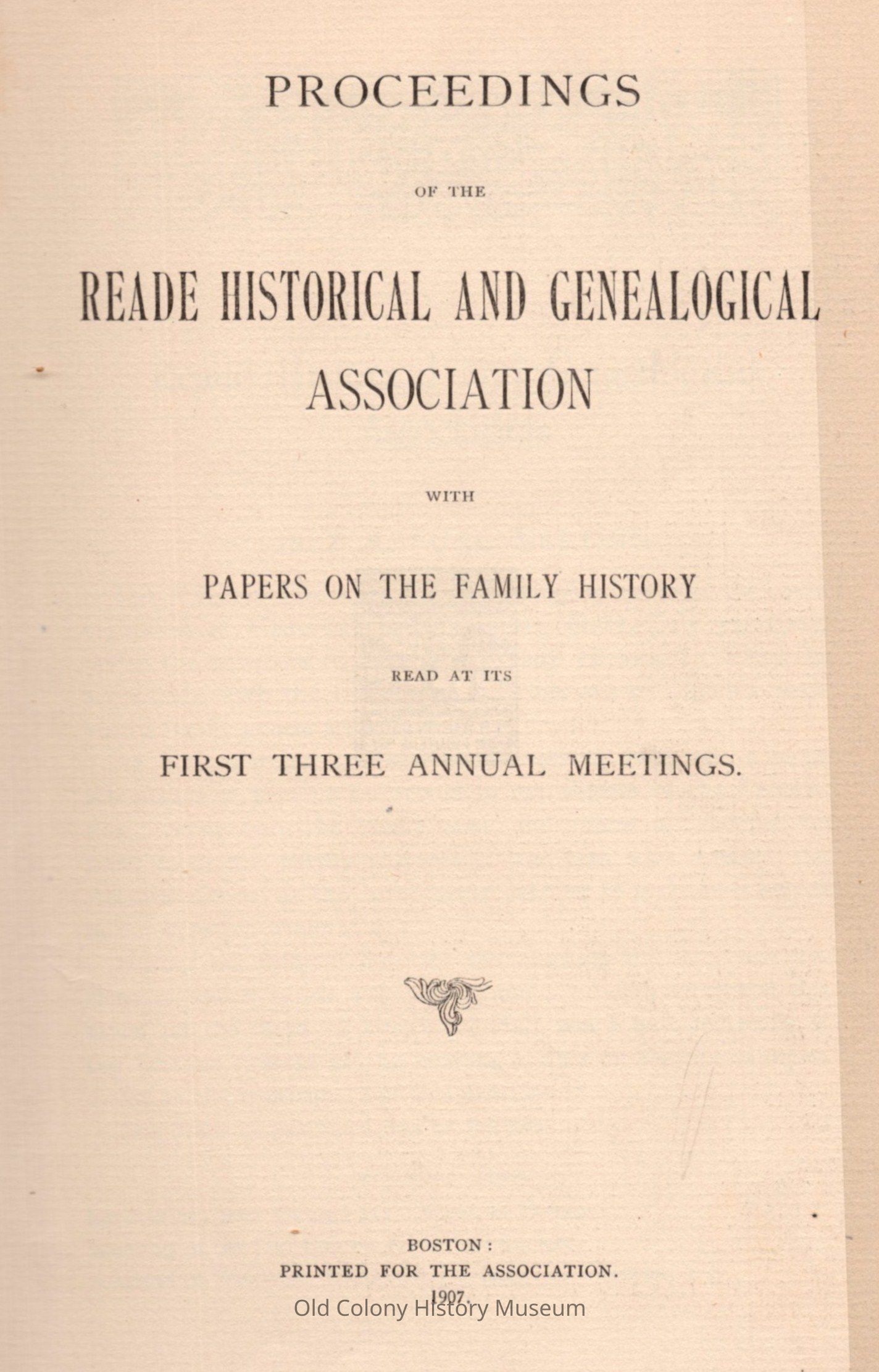 Proceedings of the Reade Historical and Genealogical Association; with Papers on the Family History Read at its First Three Annual MeetingsEntry/Object ID