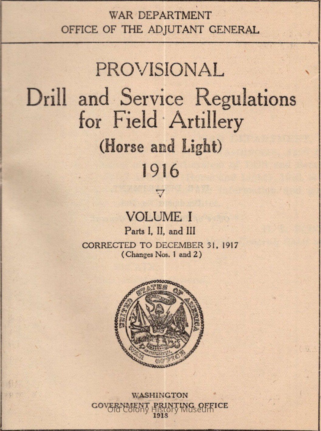 Provisional drill and service regulations for field artillery (horse and light); 1916Entry/Object ID