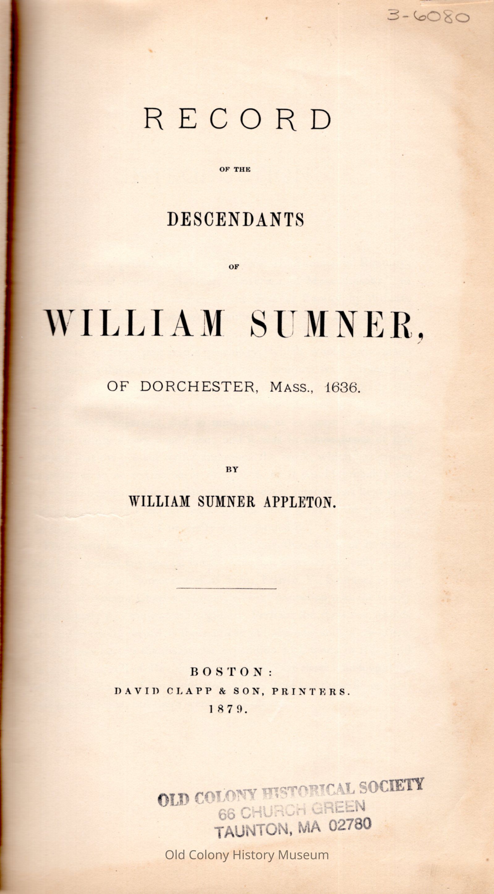 Record of the Descendants of William Sumner, of Dorchester, Mass., 1636Entry/Object ID