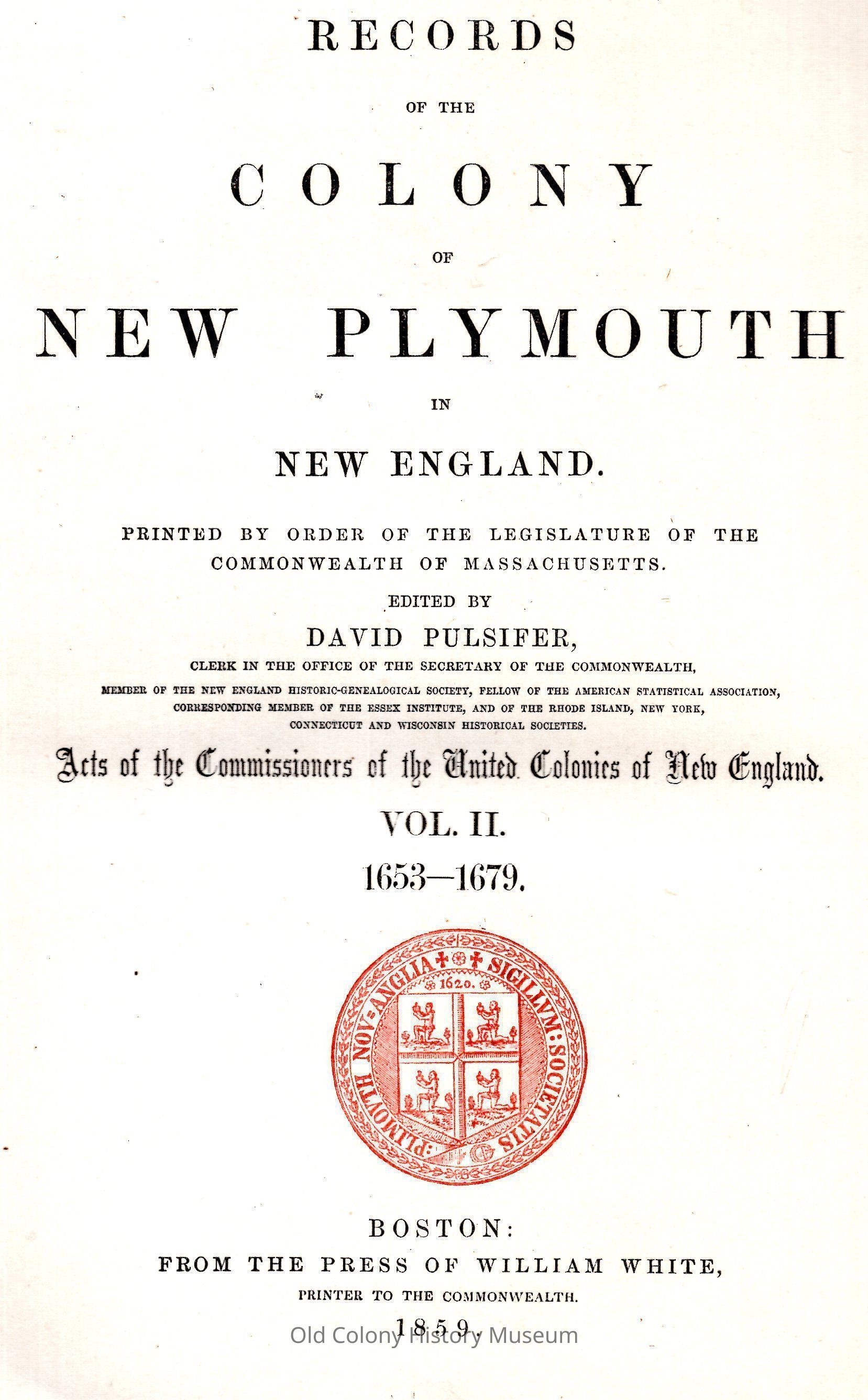 Records of the Colony of New Plymouth in New England; Acts of the Commissioners of the United Colonies of New EnglandEntry/Object ID