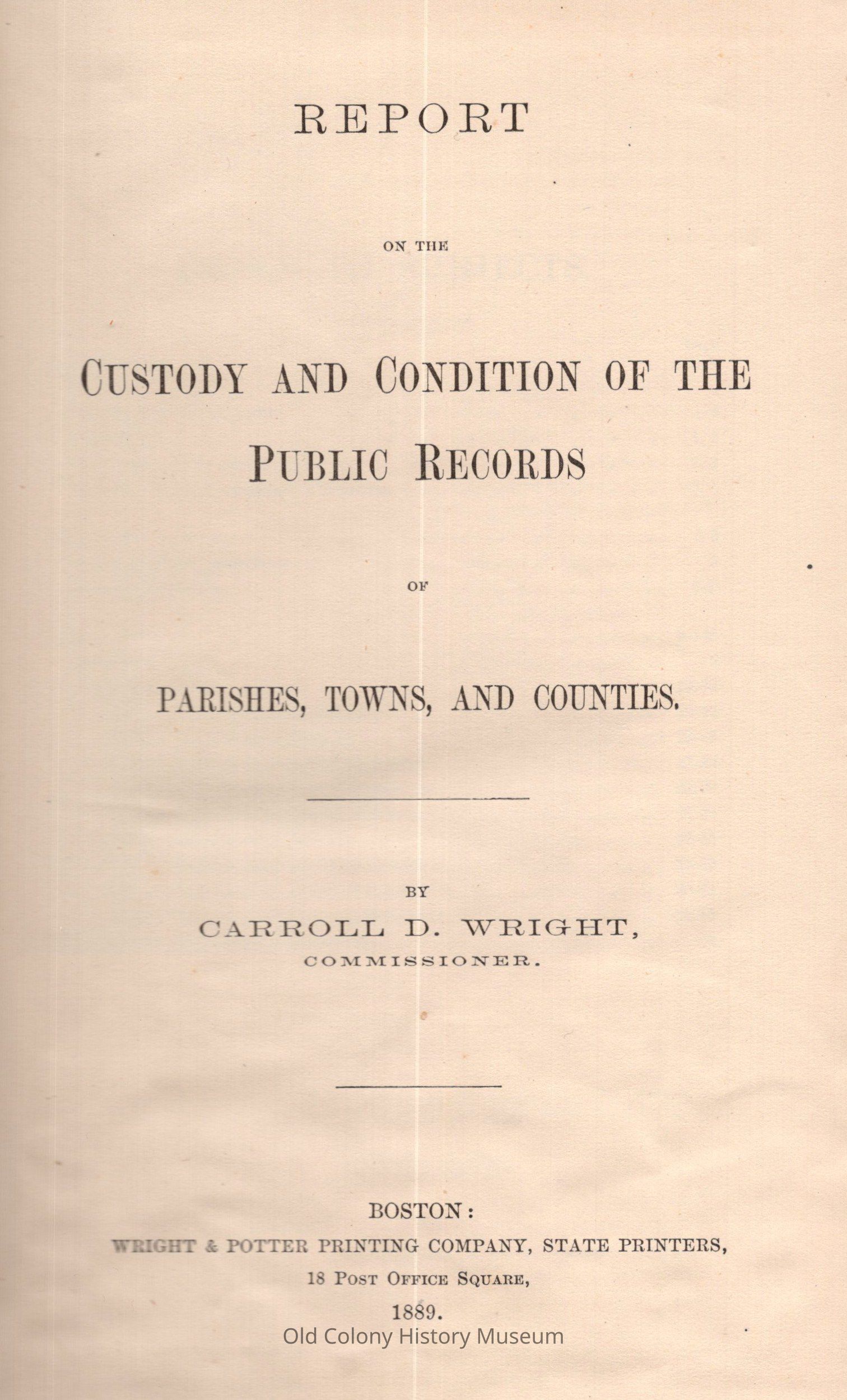 Report on the custody and condition of the public records of parishes, towns, and countiesEntry/Object ID