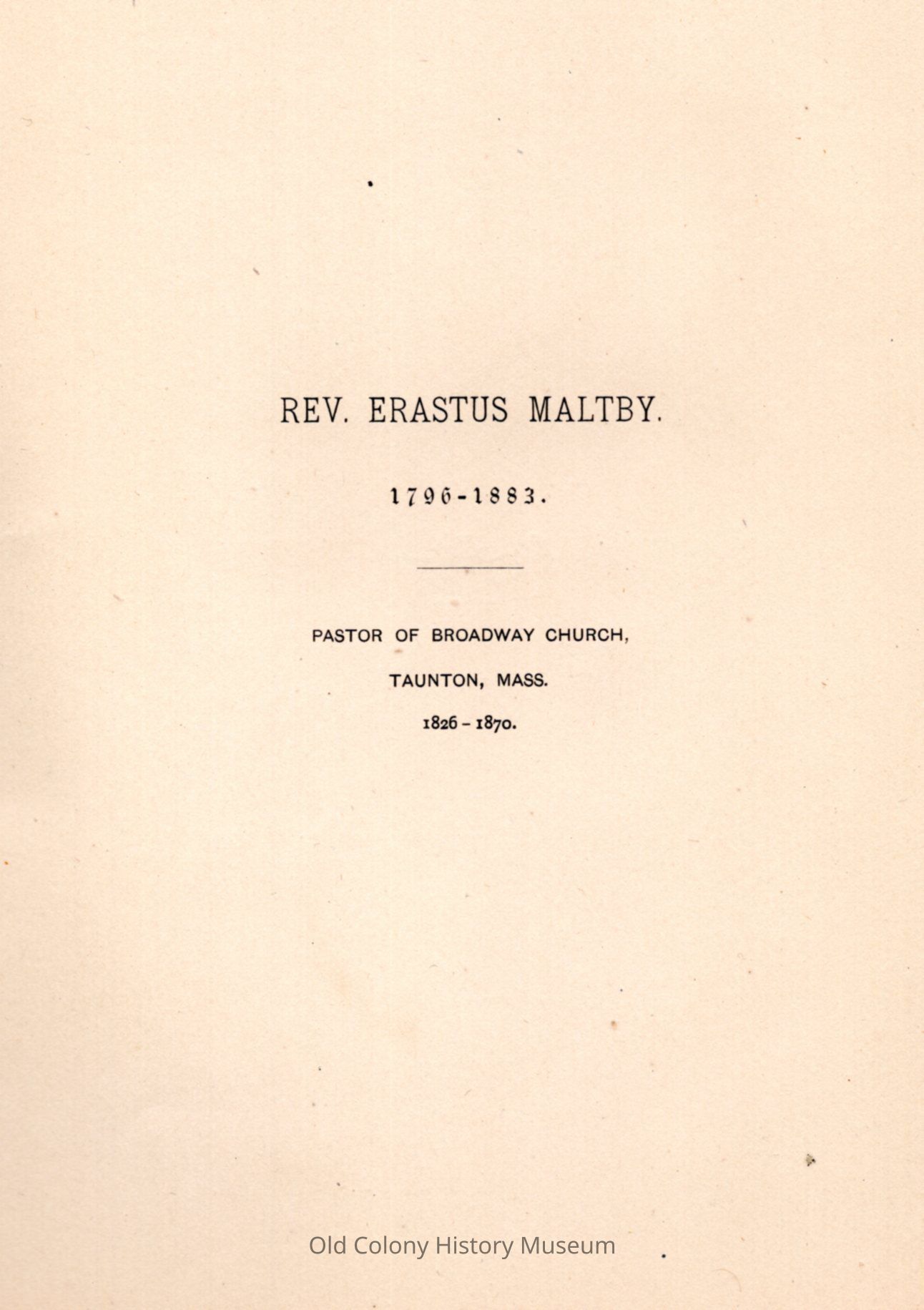 1. Rev. Erastus Maltby. 2. Taunton, MA--History.Book Details