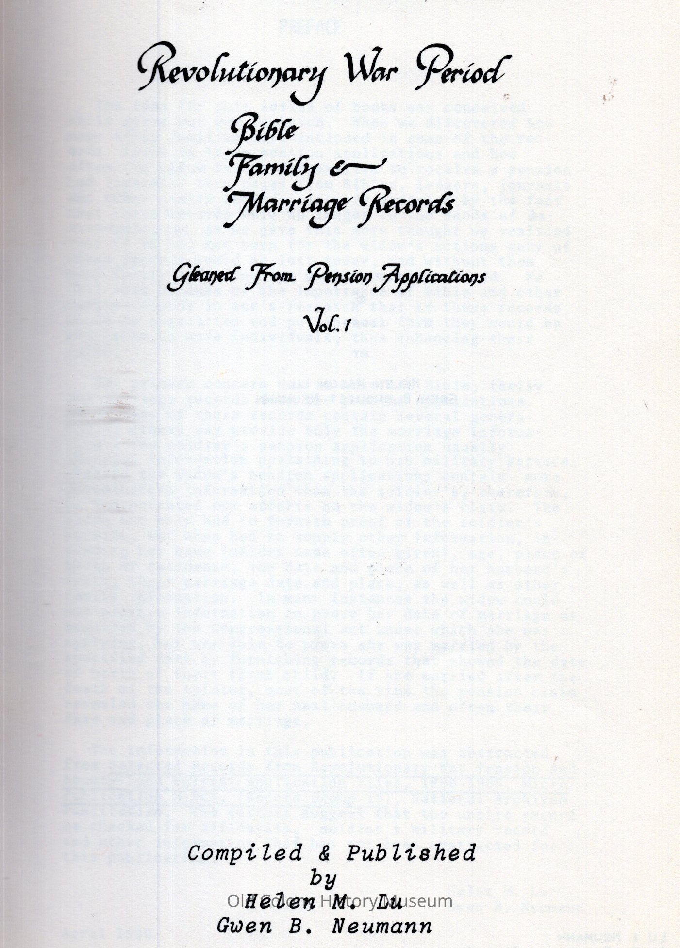 Revolutionary War period; Bible, family & marriage records gleaned from pension applicationsEntry/Object ID