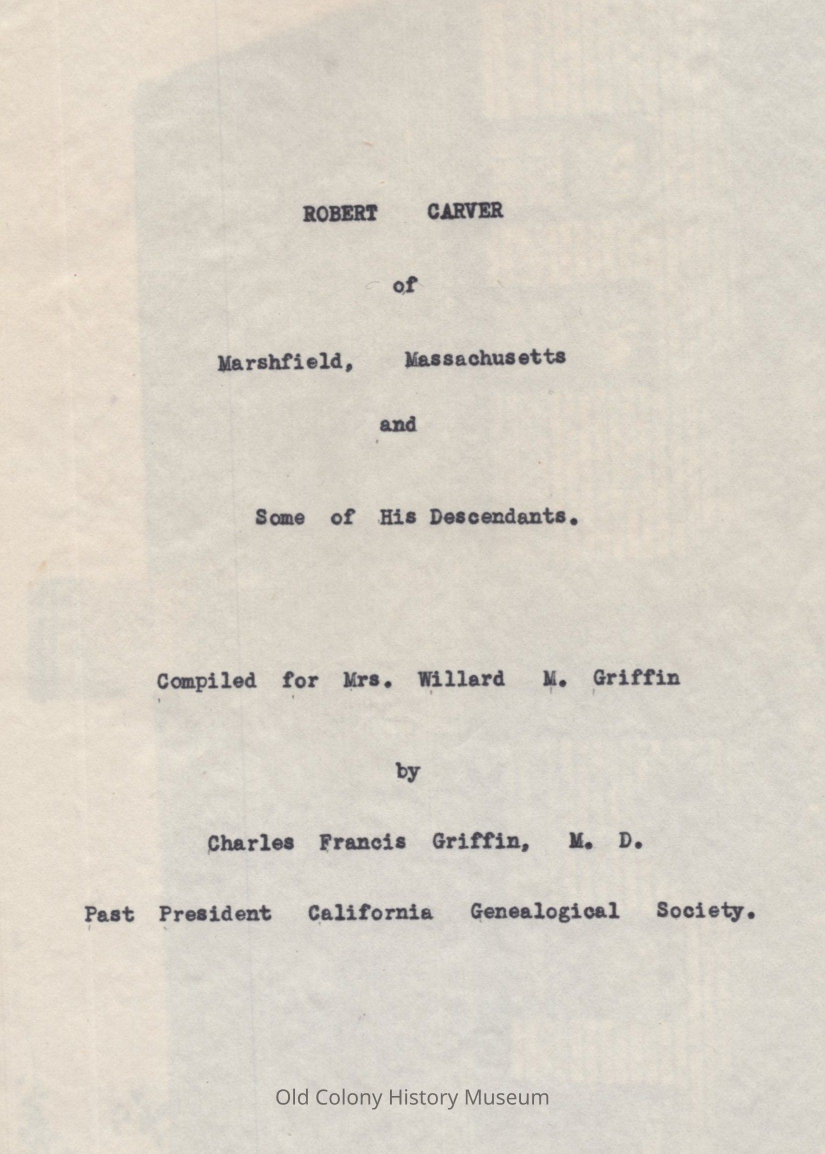 Robert Carver of Marshfield; and Some of His DescendantsEntry/Object ID