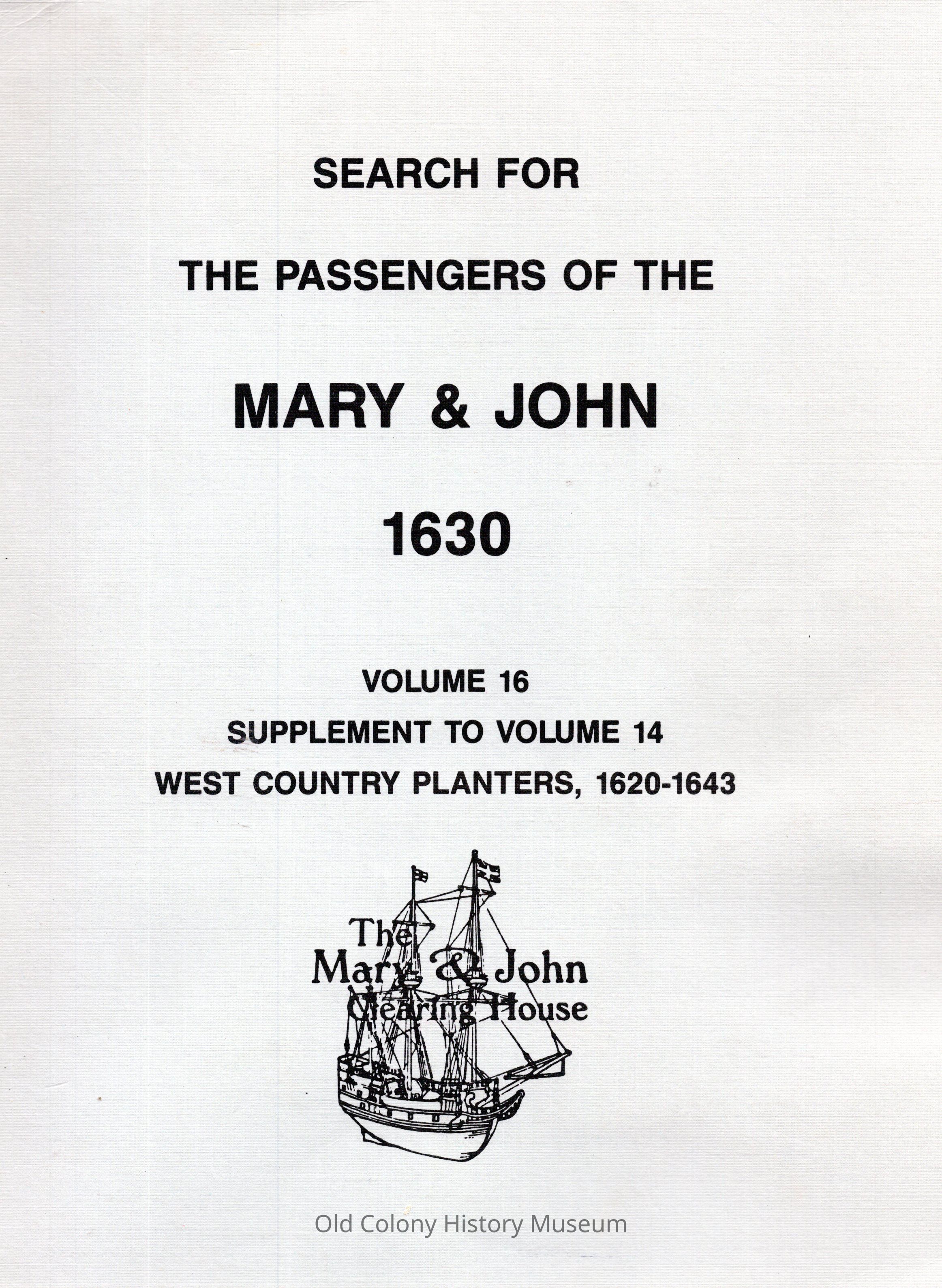 Search for the passengers of the Mary & John 1630; : volume 16: supplement to volume 14 West Country planters, 1620-1643Entry/Object ID