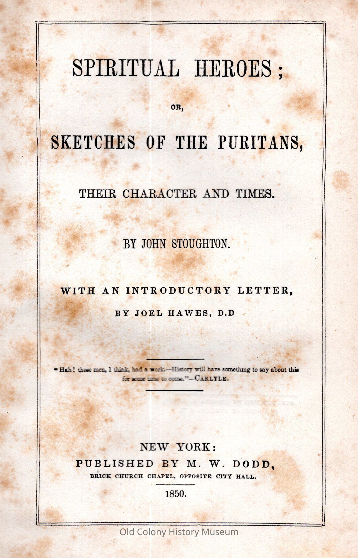 Spiritual heroes; or, sketches of the Puritans, their character and timesEntry/Object ID