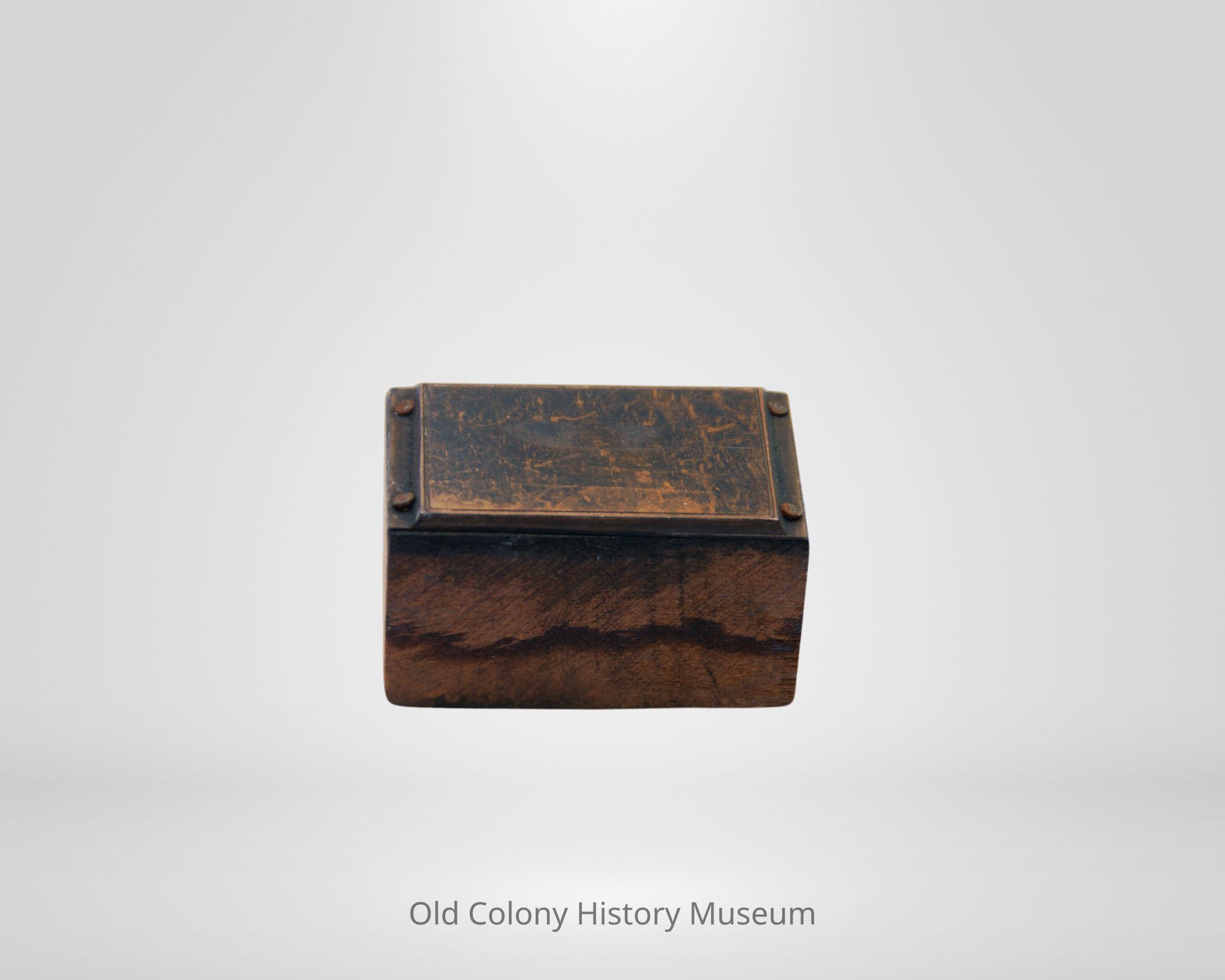 Rectangular steel stamp set on a hardwood base. Stamp has image of a pewter bowl. Most likely used for catalogues and print advertisements.