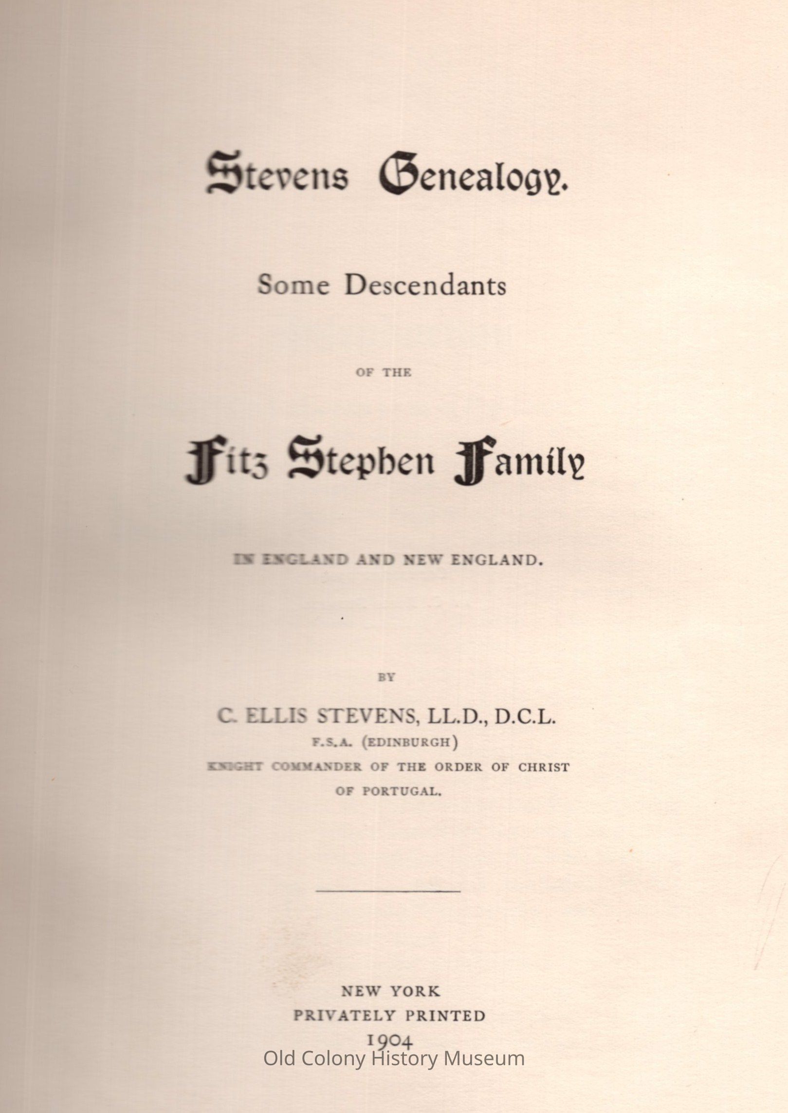 Stevens Genealogy; Some Descendants of the Fitz Stephen Family in England and New EnglandEntry/Object ID
