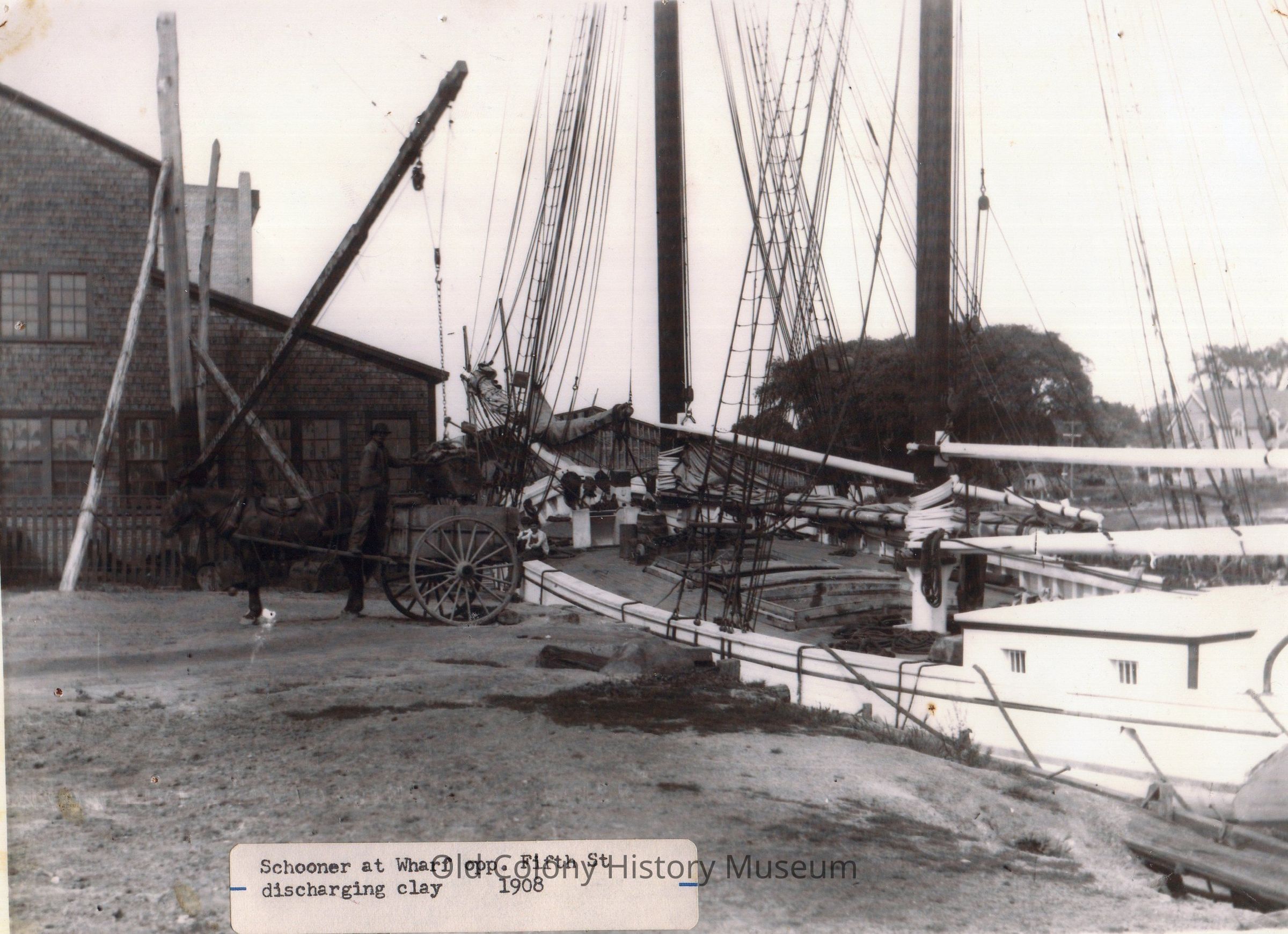 Taunton River - Schooner at Wharf Discharging Clay - 1908