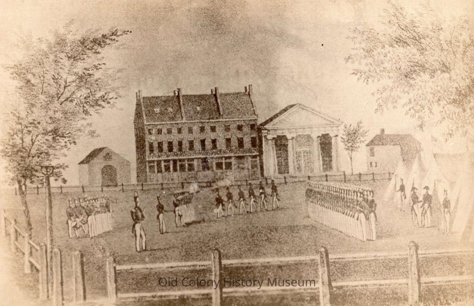 Taunton - Taunton Green - Illustrations - East Side of Taunton Green - Cohannet Rifle Corps Drill - 1837Entry/Object ID