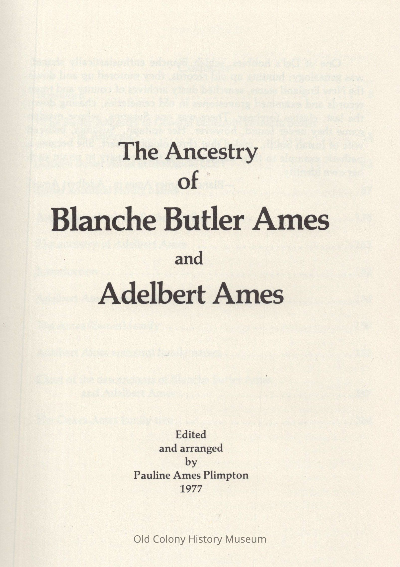 The Ancestry of Blanche Butler Ames and Adelbert Ames: Edited and Arranged by Pauline Ames PlimptonEntry/Object ID