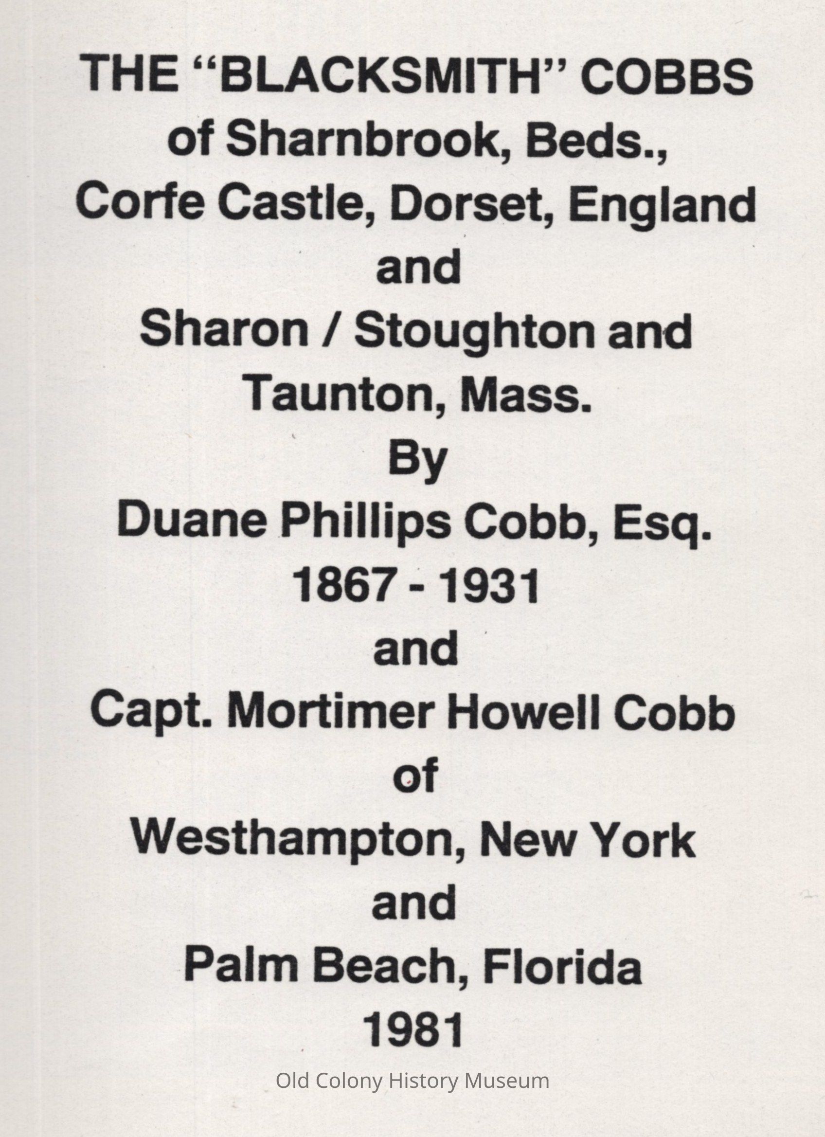 The "Blacksmith" Cobbs of Sharnbrook, Beds., Corfe Castle, Dorset, England,Entry/Object ID