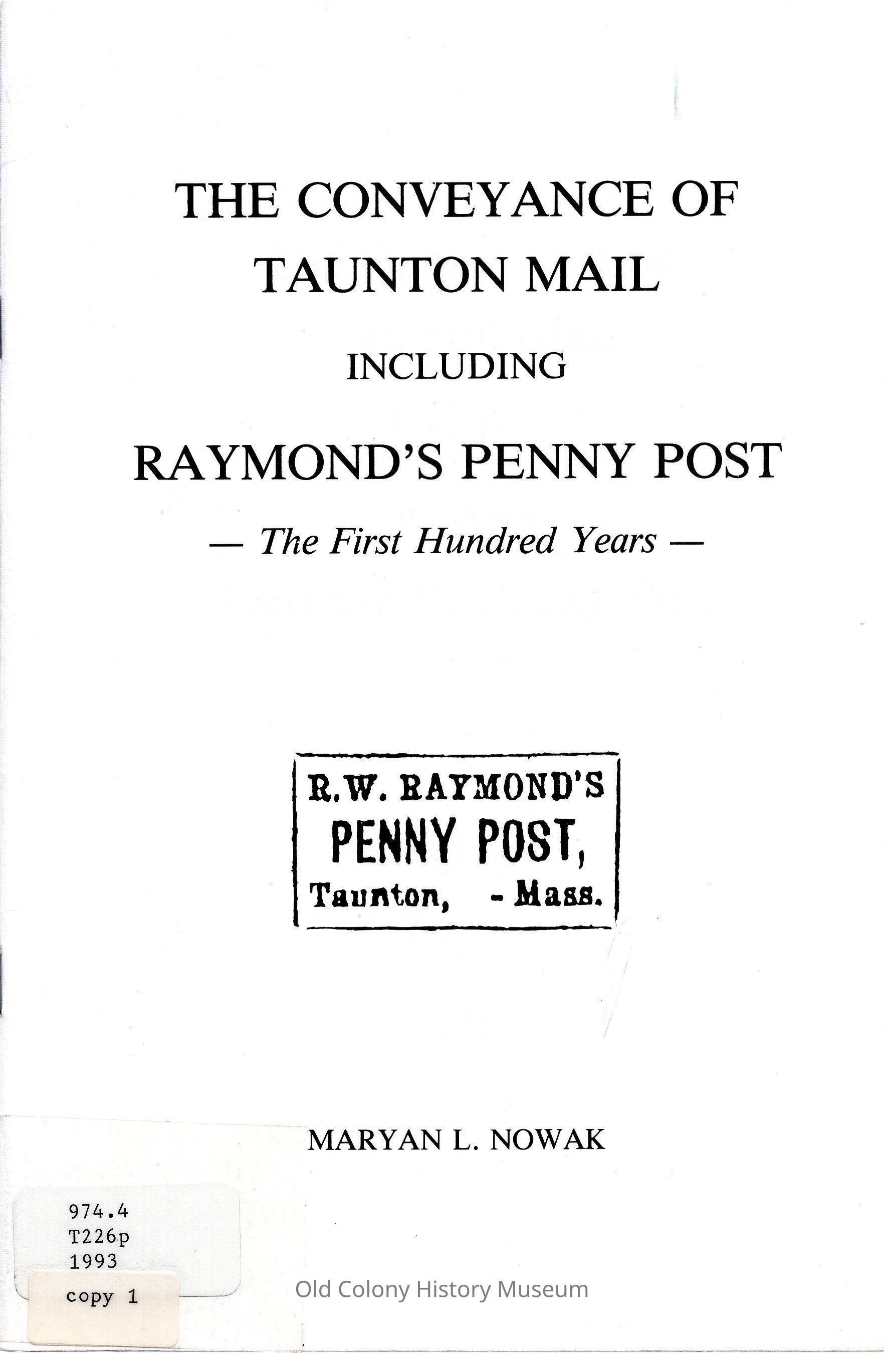 The Conveyance of Taunton Mail 1792-1892 Including Raymond's Penny Post Circa 1858Entry/Object ID