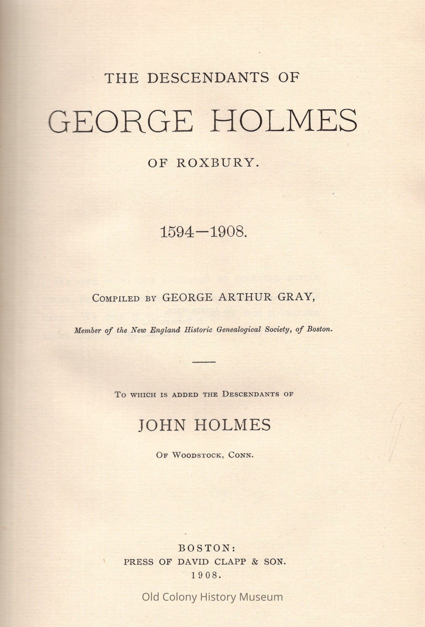 The Descendants of George Holmes of Roxbury, 1594-1908Entry/Object ID