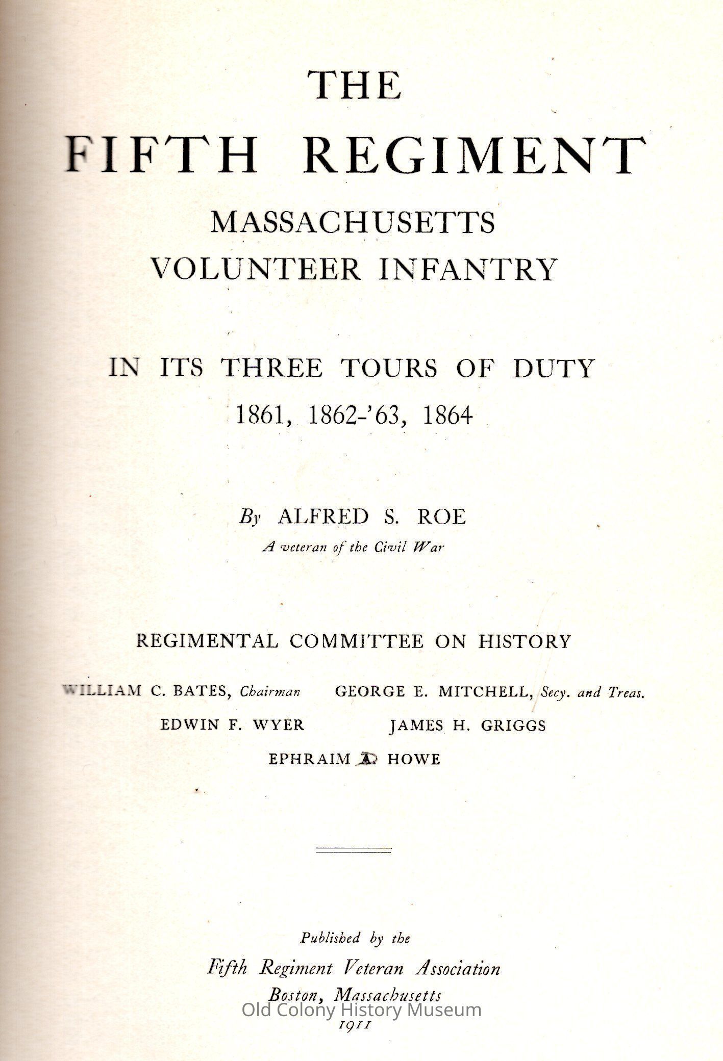 Alfred Seelye Roe, Alfred S. Roe, William C. Bates, Fifth Regiment Veterans Association, Fifth Regiment Veterans Association Regimental Committee on HistoryPublisher