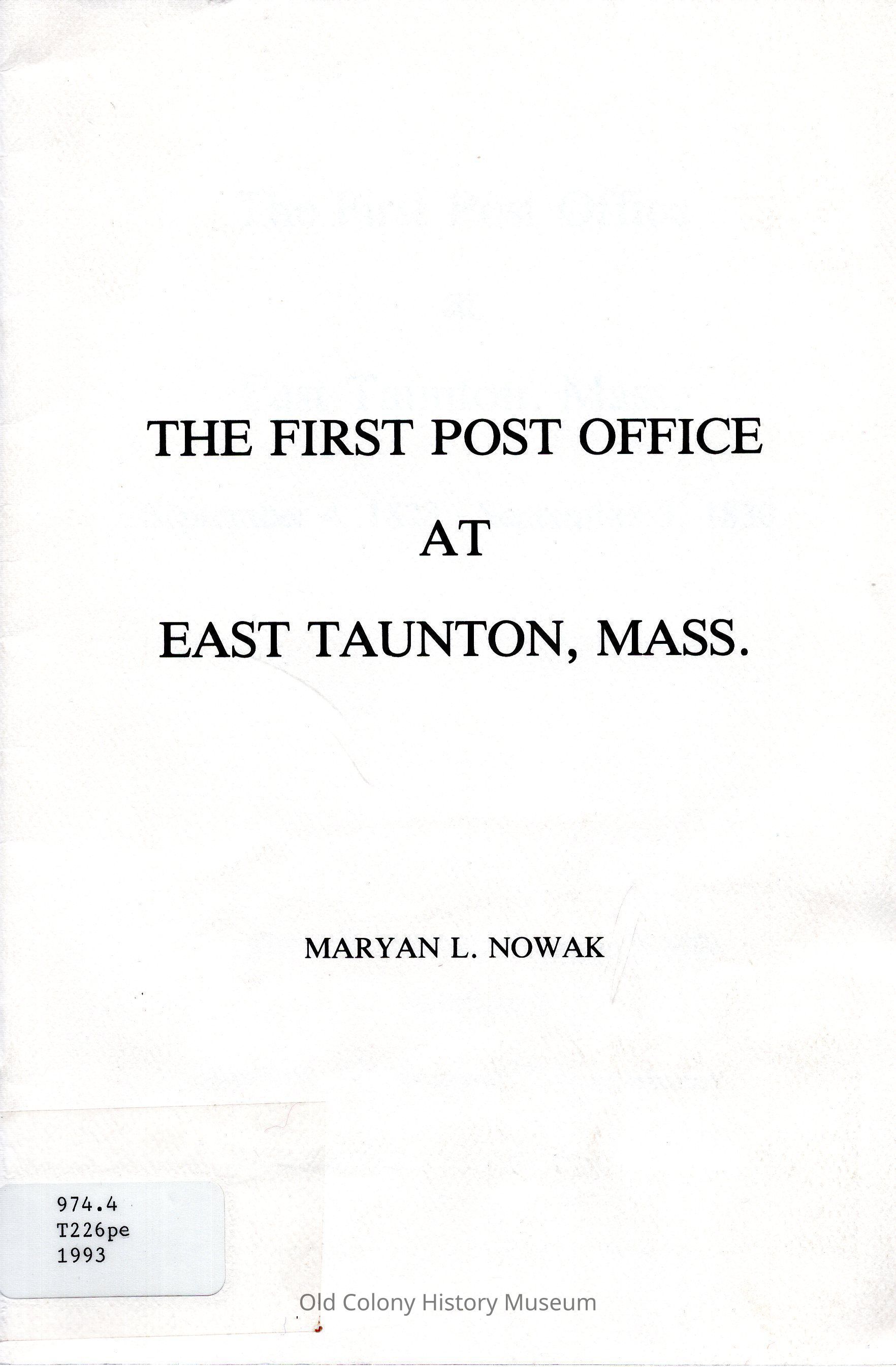 1. Taunton, Mass.--History. 2. Postal service.Book Details