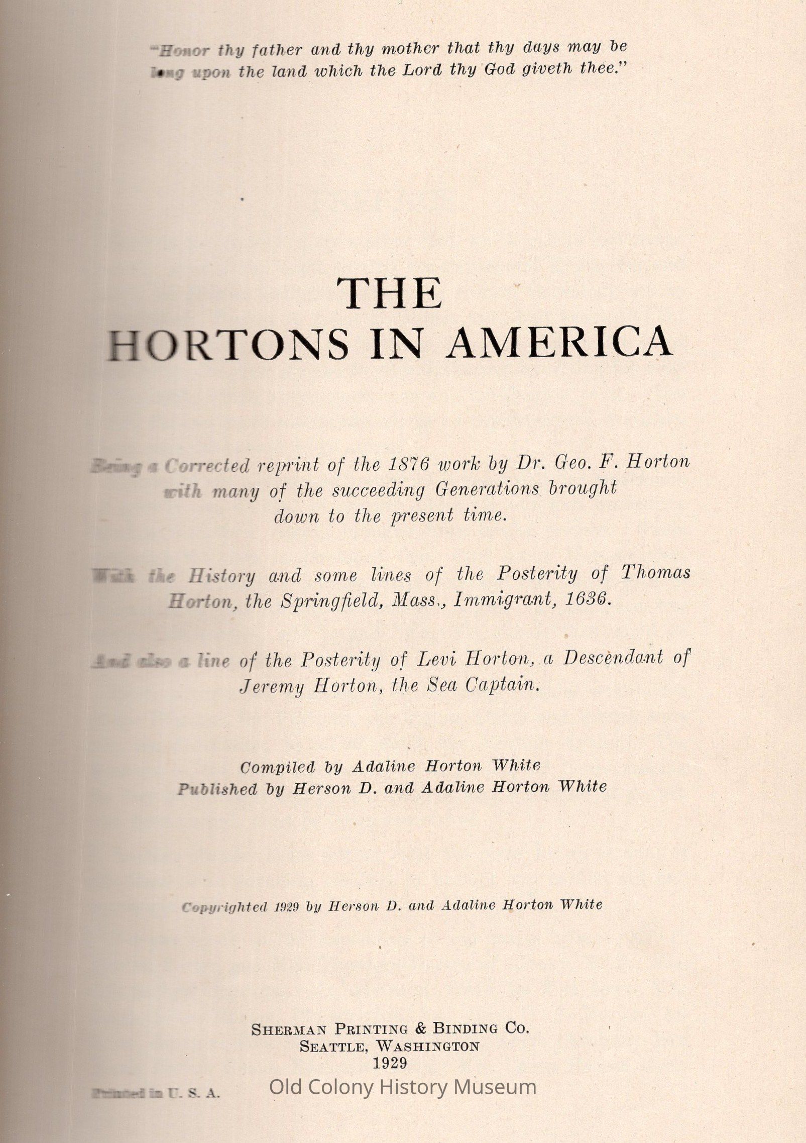 The Hortons in America: Being a Corrected Reprint of the 1876 work by Dr. Geo F. HortonEntry/Object ID