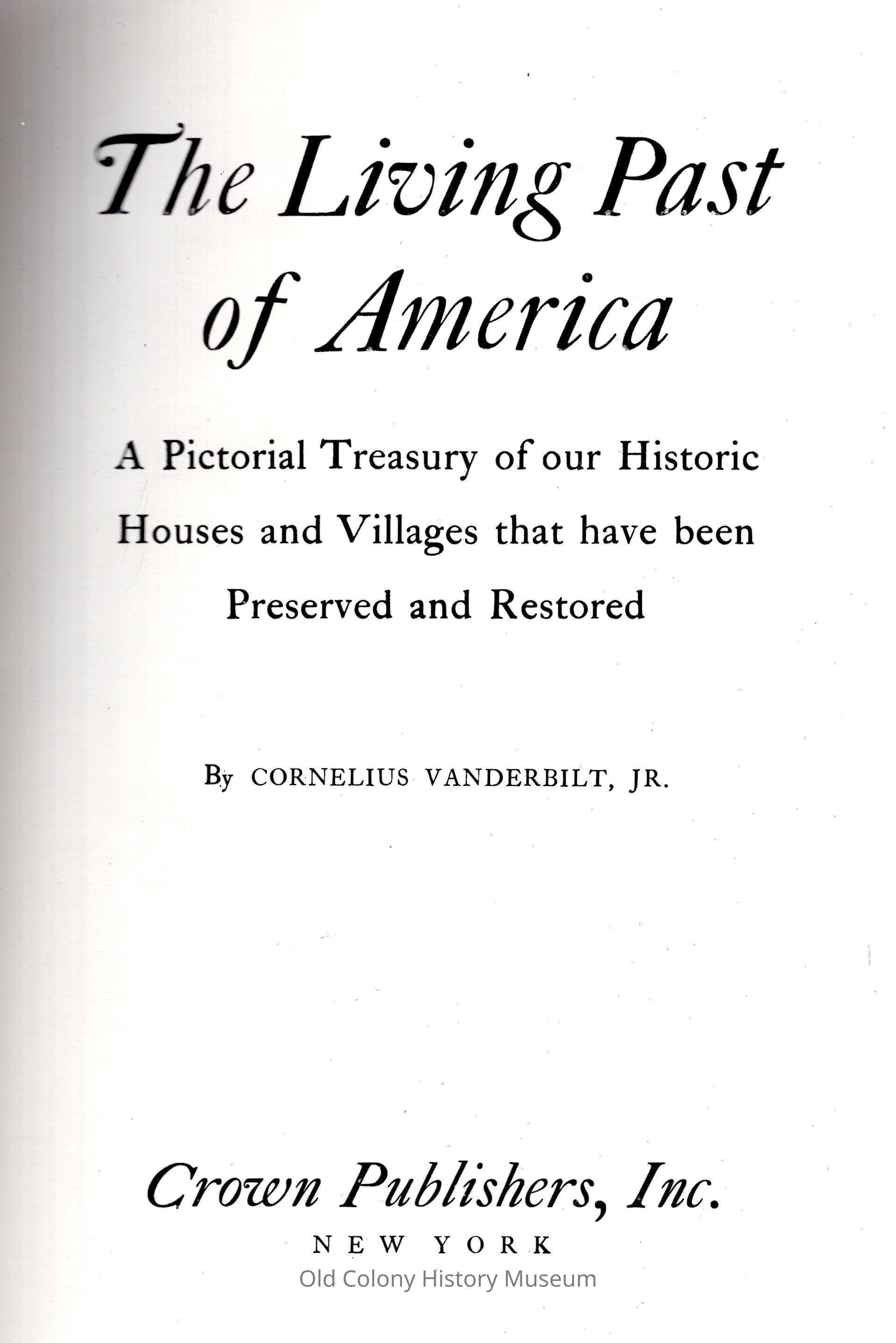 The Living Past of America; a pictorial treasury of our historic houses and villages that have been preserved and restoredEntry/Object ID
