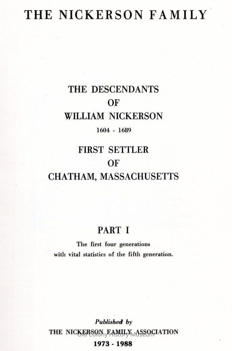 1. Nickerson family. 2. Nickerson, Wm., 1604-1689.Book Details