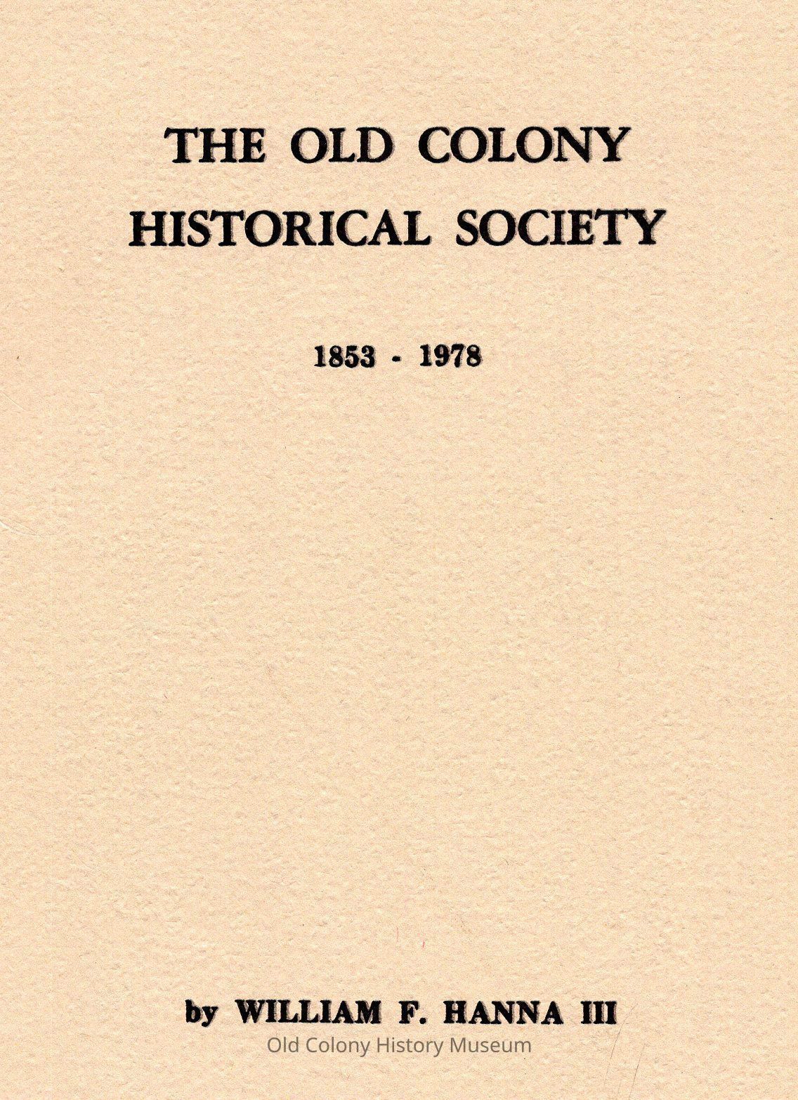The Old Colony Historical Society, 1853-1978Entry/Object ID