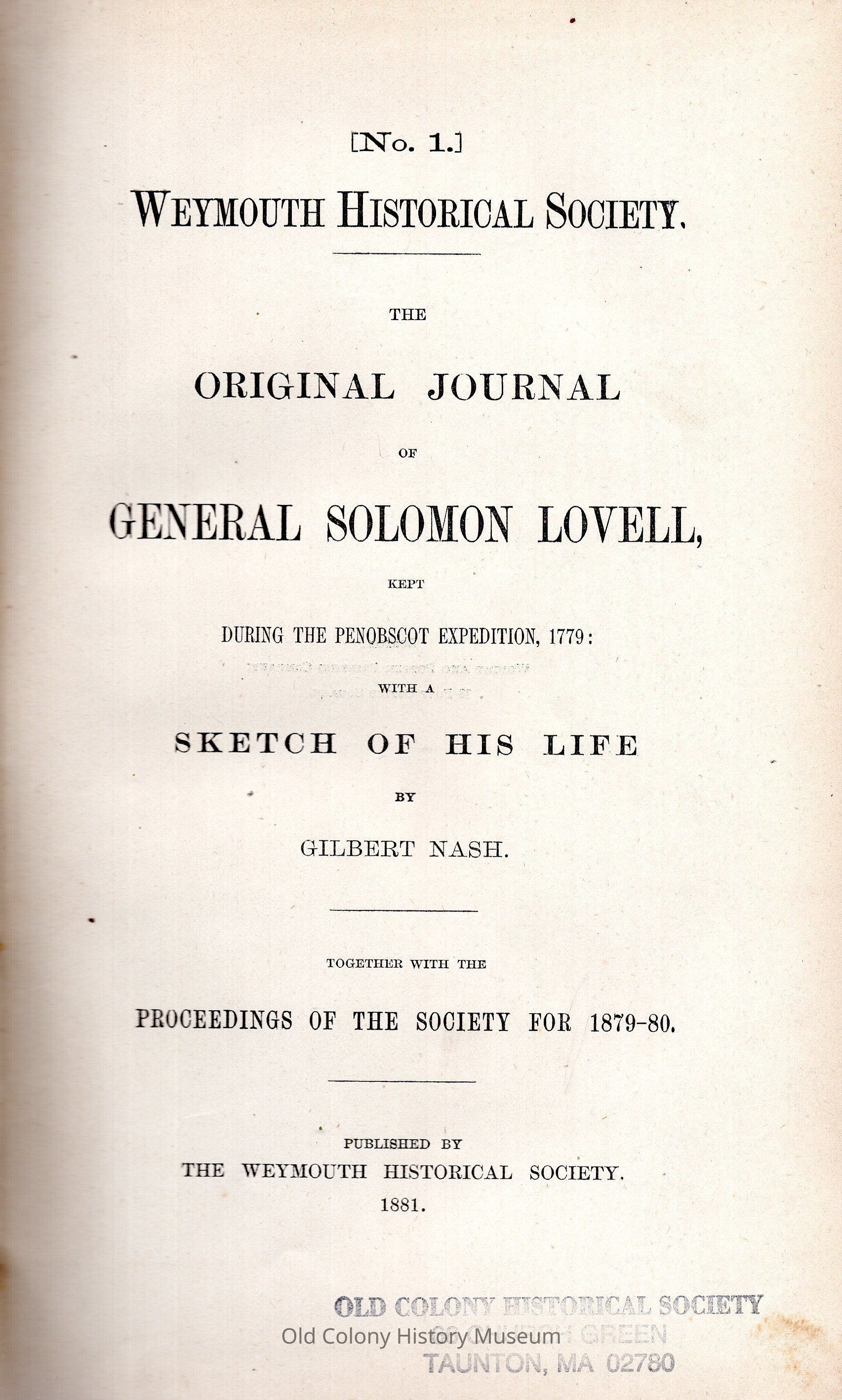 The Original Journal of General Solomon Lovell : Kept During the Penobscot Expedition 1779Entry/Object ID