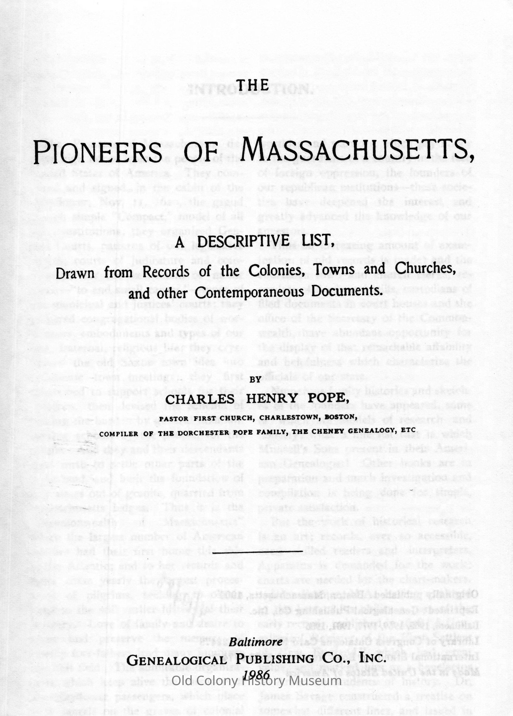 The pioneers of Massachusetts; a descriptive list, drawn from records of the colonies, towns, and churches, and other contemporaneous documentsEntry/Object ID