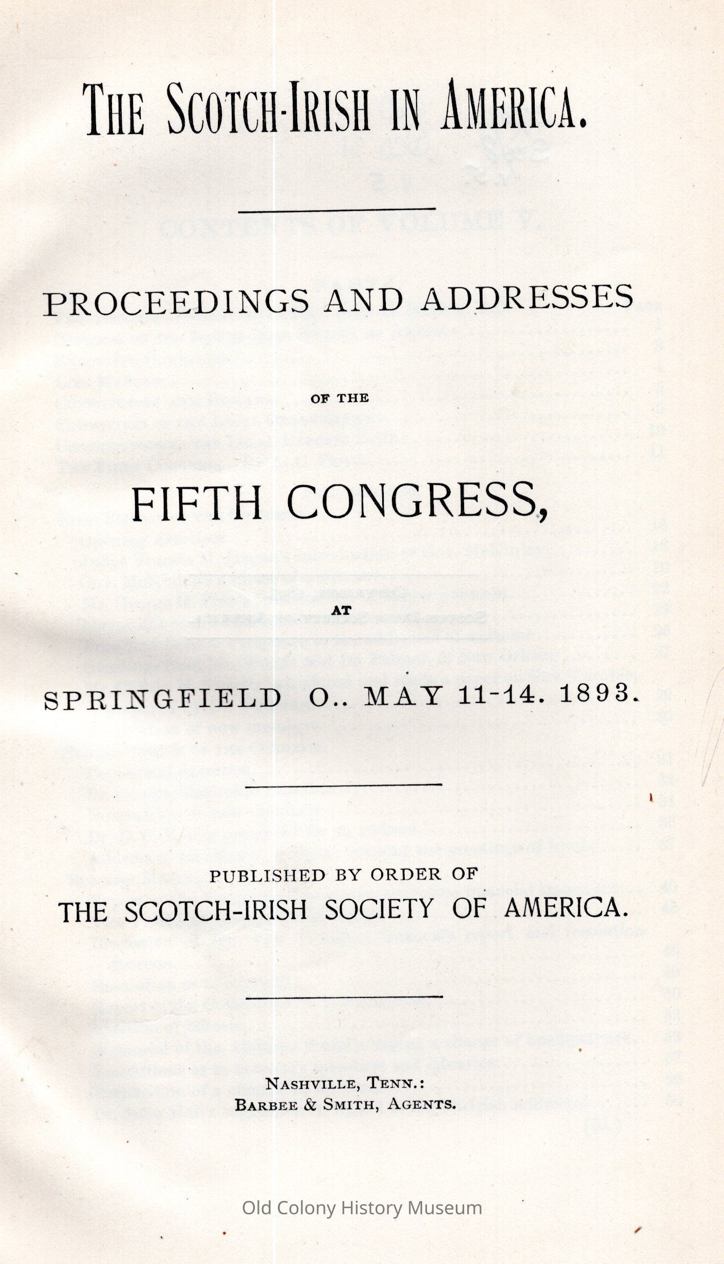 The Scotch-Irish in America; proceedings and addresses of the fifth congress, at Springfield O., May11-14, 1893Entry/Object ID
