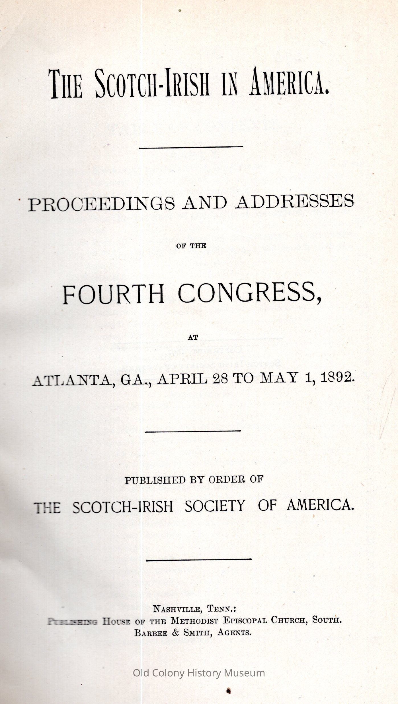 The Scotch-Irish in America; proceedings and addresses of the fourth congress at Atlanta, Ga., April 28 to May 1, 1892Entry/Object ID