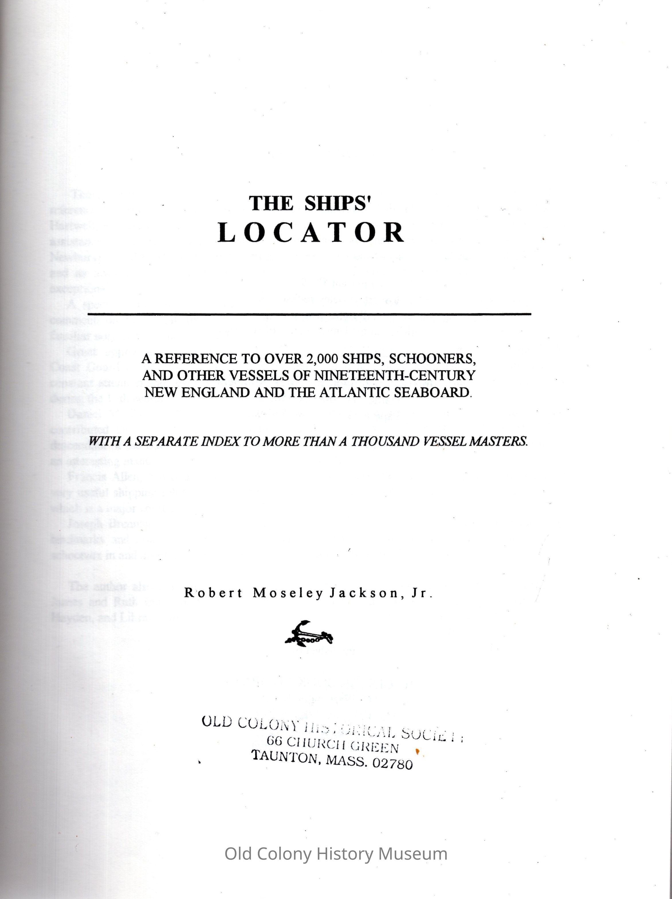 The ships' locator: a reference to over 2,000 ships, schooners, and other vessels of nineteenth-century New England and the Atlantic Seaboard: with a separate index to more than a thousand vessel mastersEntry/Object ID