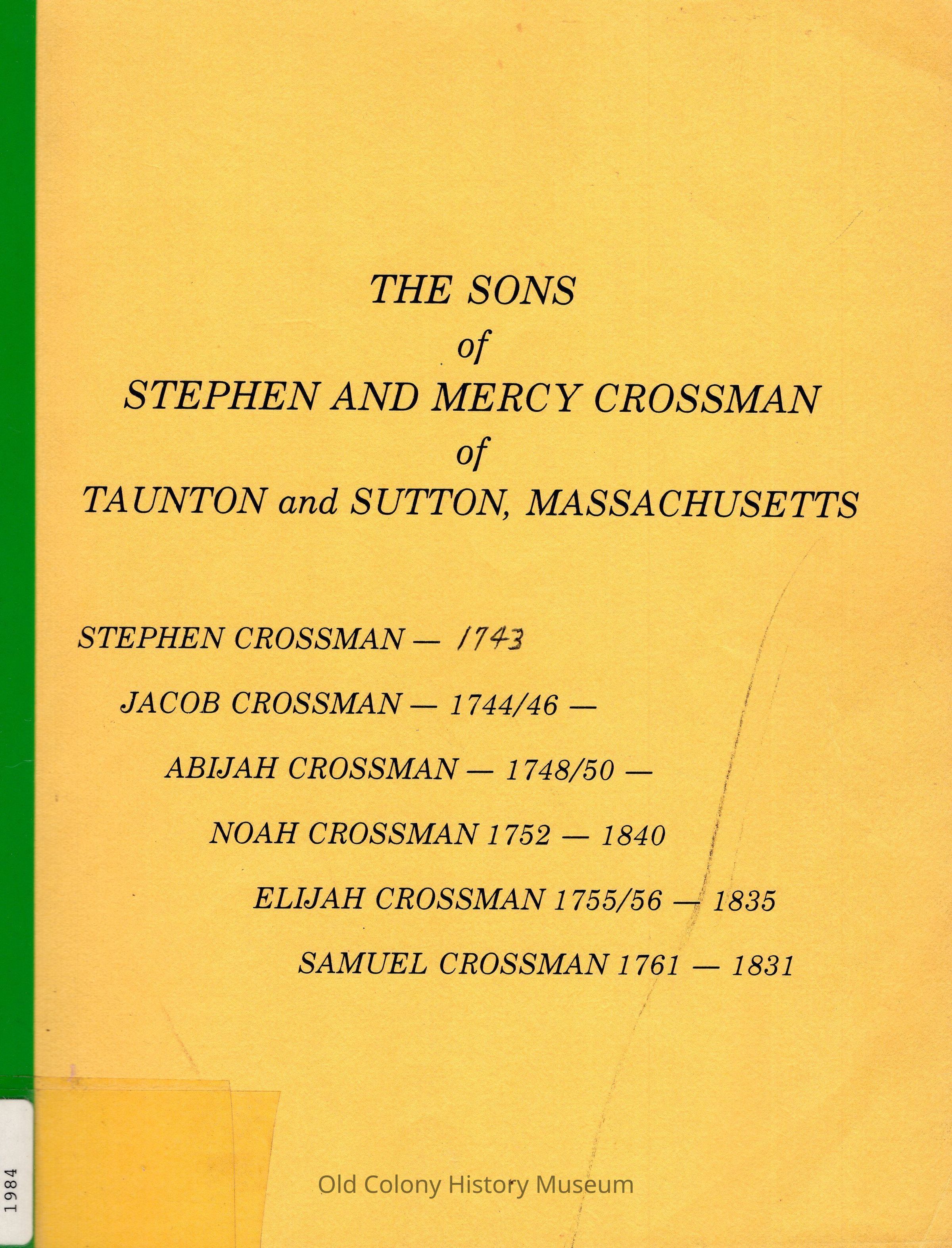 The Sons of Stephen and Mercy CrossmanEntry/Object ID