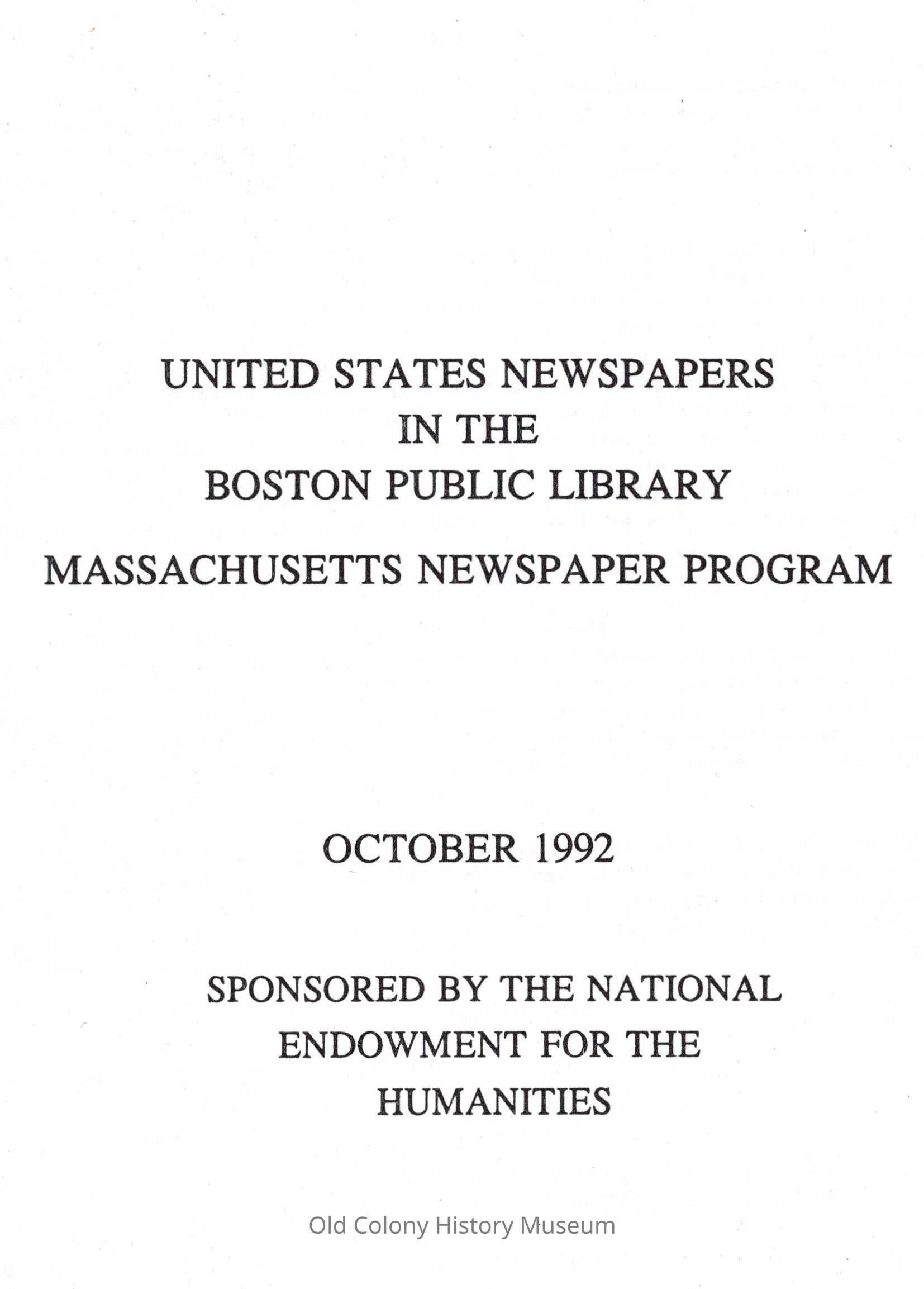 United States newspapers in the Boston Public Library: Massachusetts newspaper programEntry/Object ID