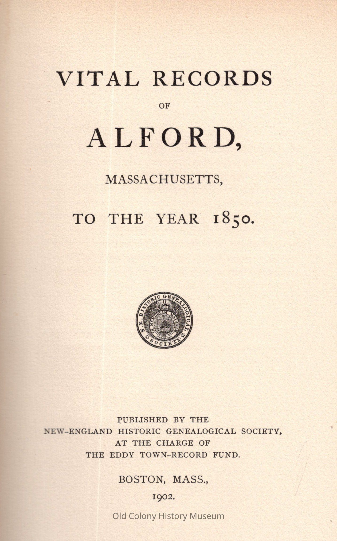 1. Registers of births, etc.--Alford, Mass.Book Details