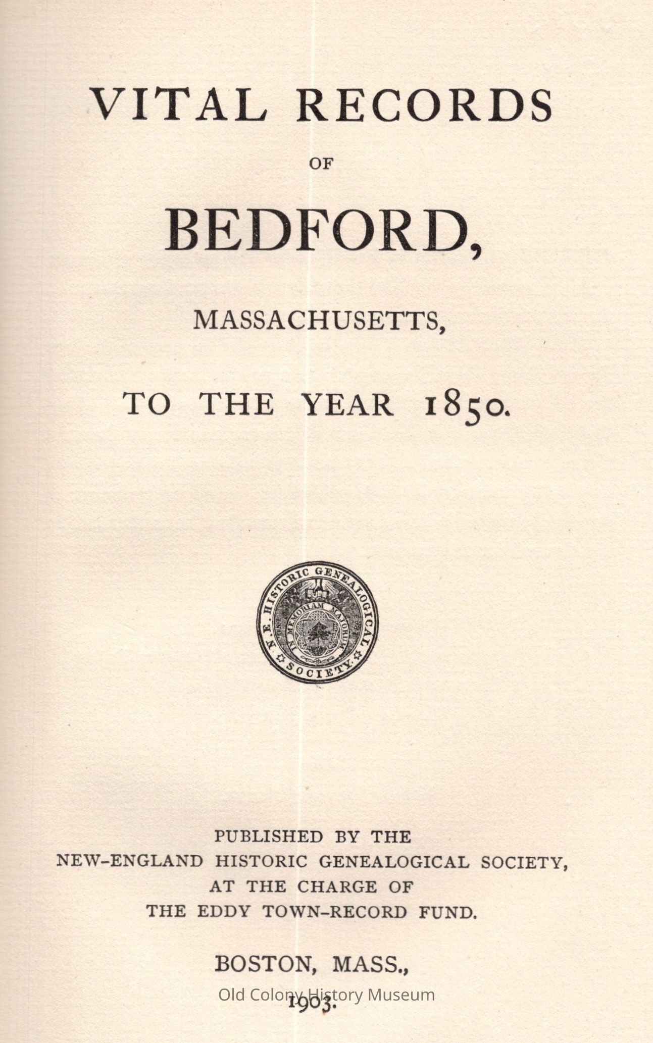New England Historic Genealogical Society, at the charge of the Eddy town record fundPlace Published