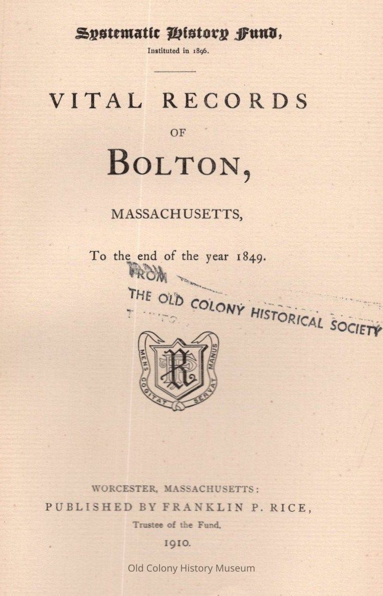 Vital Records of Bolton, Massachusetts to the End of the Year 1849.Entry/Object ID