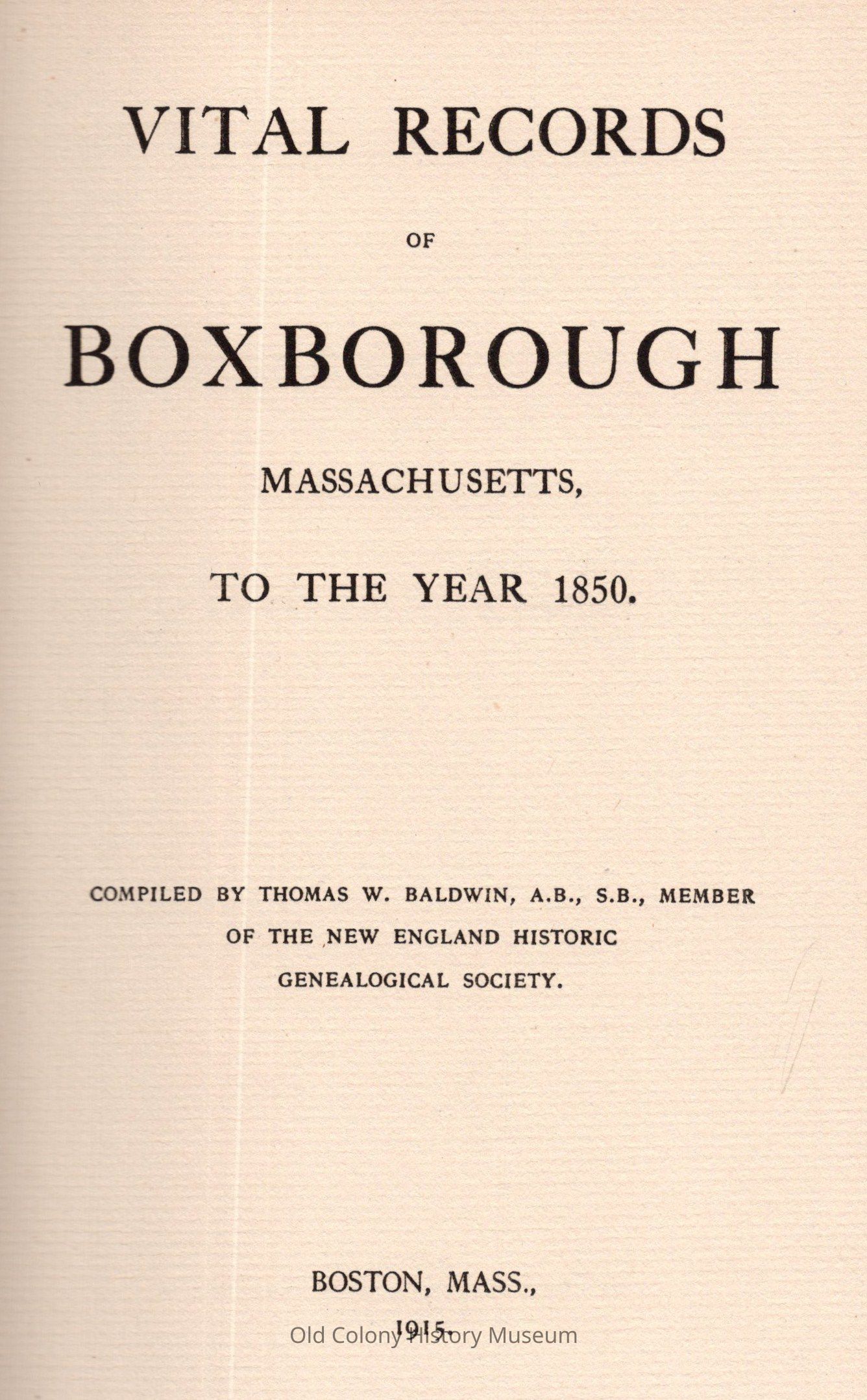 Vital Records of Boxborough, Massachusetts, to the Year 1850Entry/Object ID