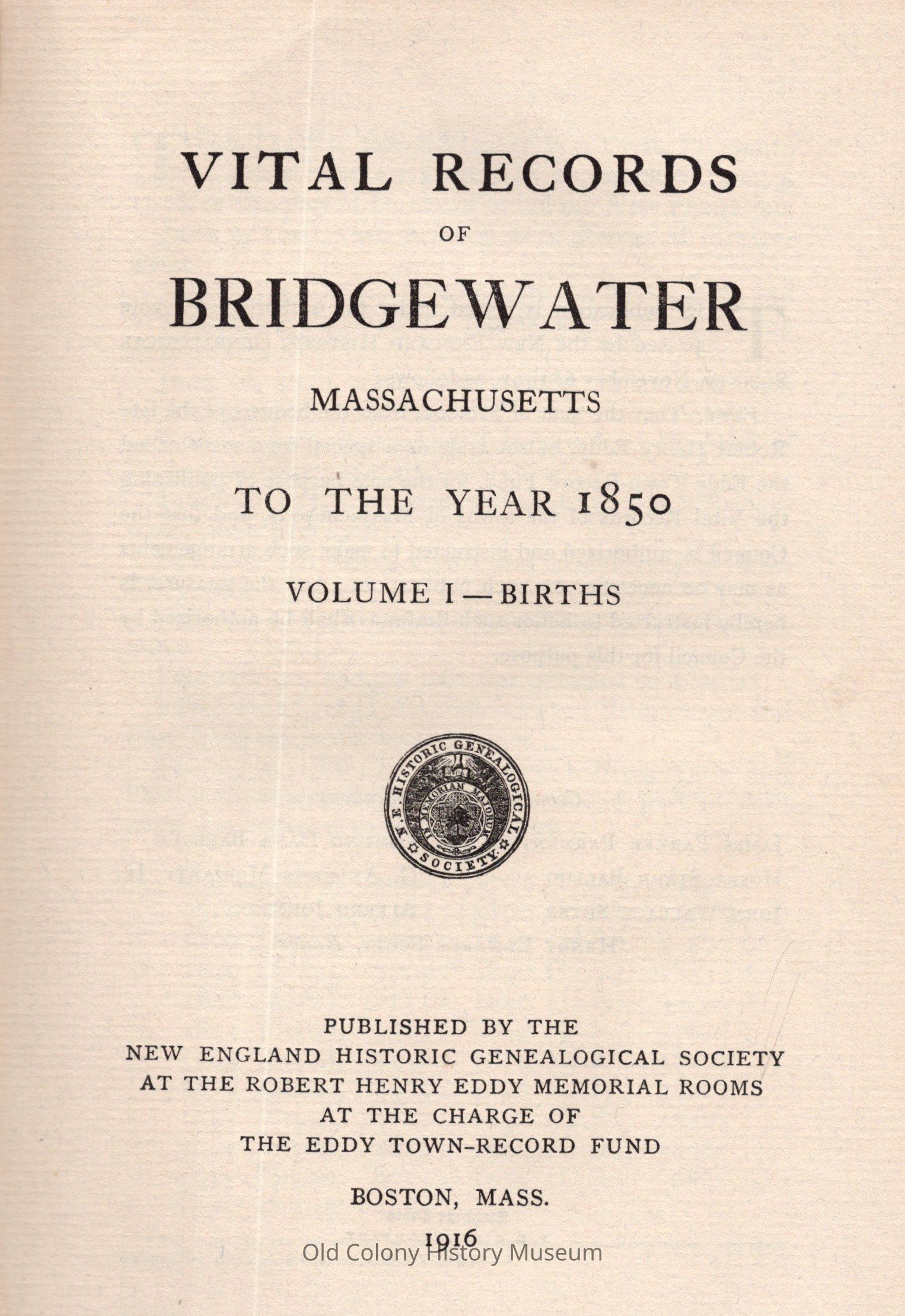 New England Historic Genealogical Society, at the charge of the Eddy town record fundPlace Published