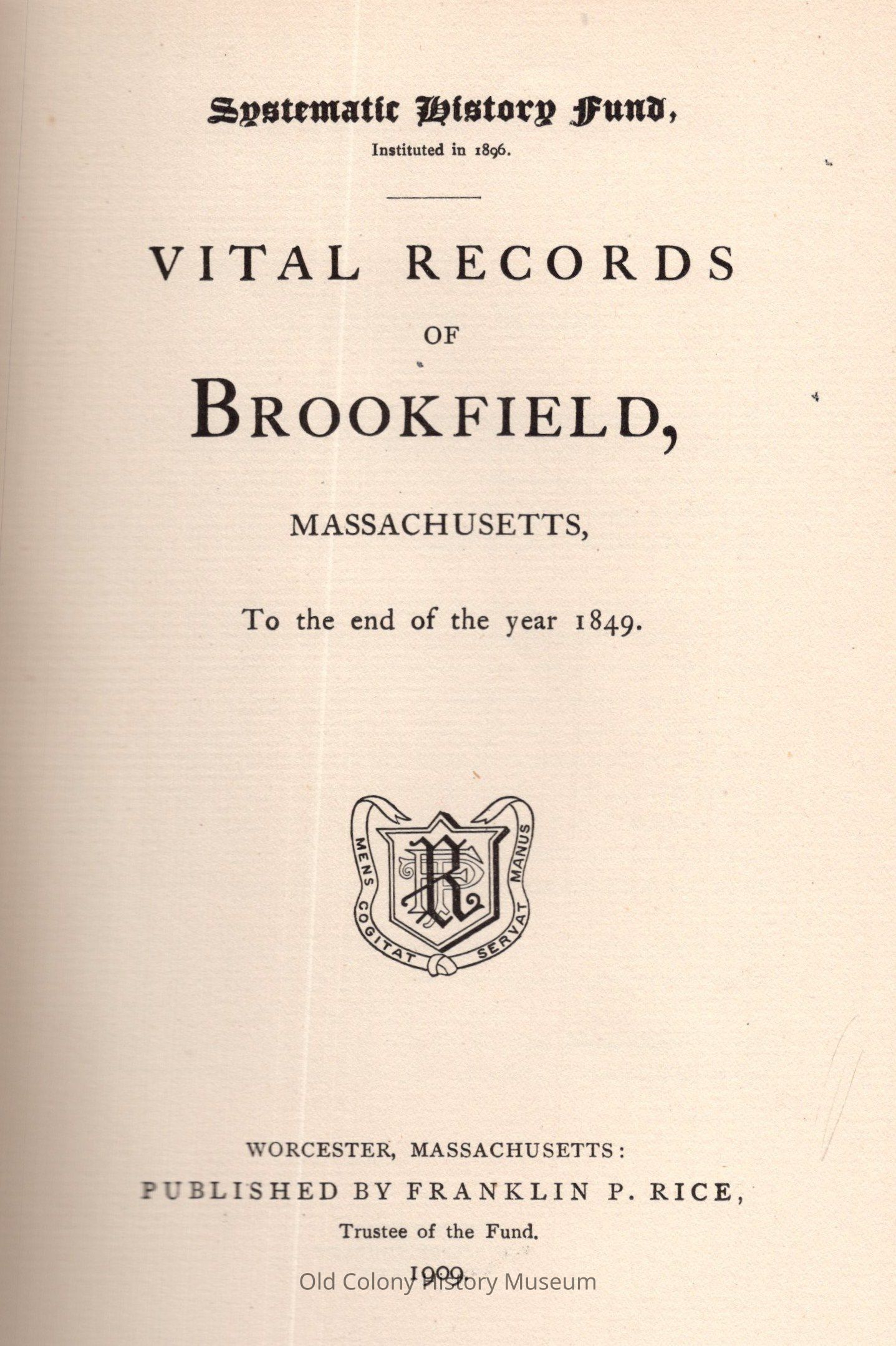 Vital Records of Brookfield, Massachusetts to the End of the Year 1849.Entry/Object ID